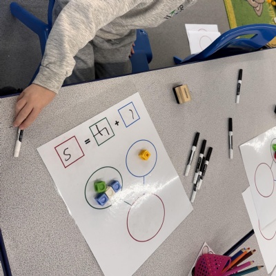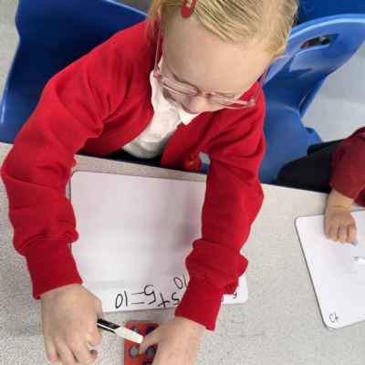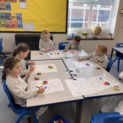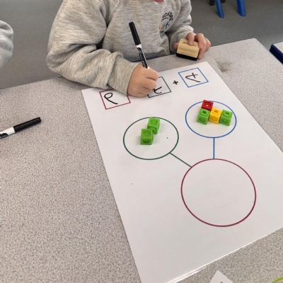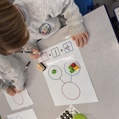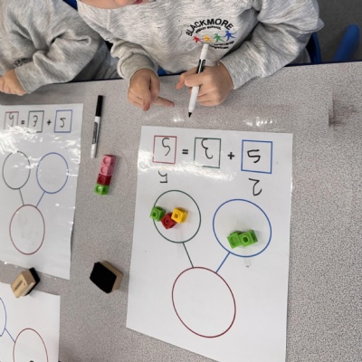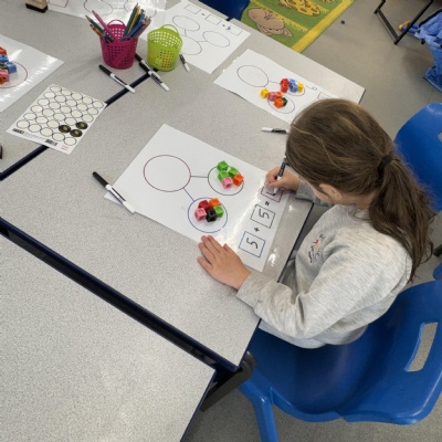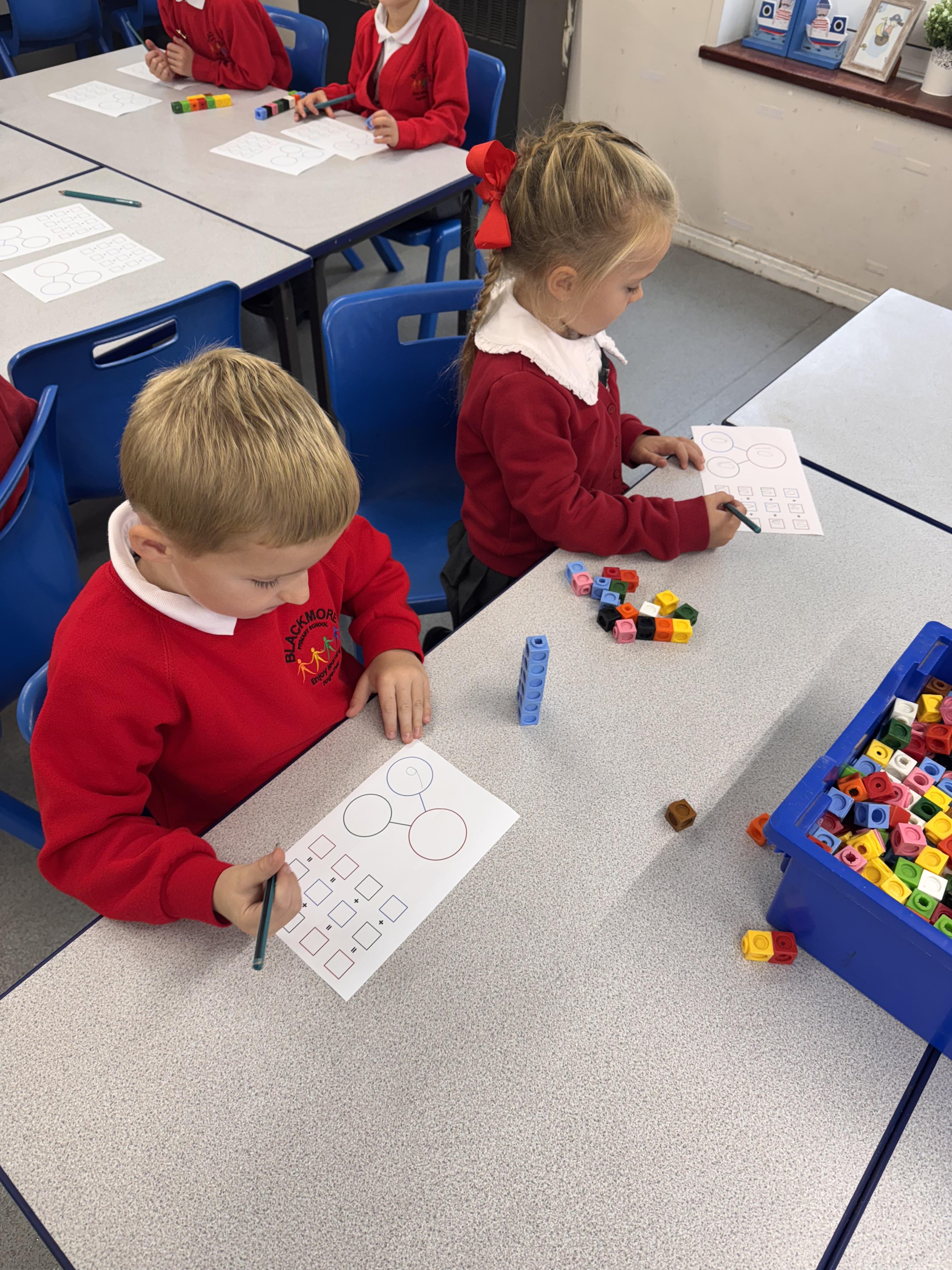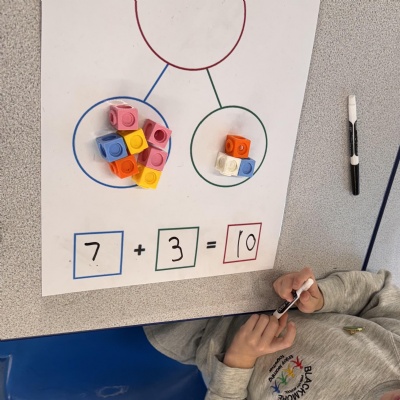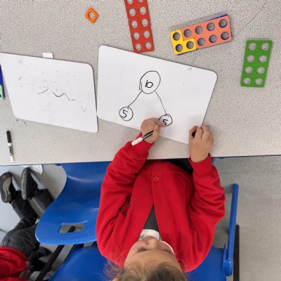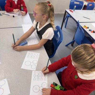 In Maths we have been learning to use the part whole model to create number sentences. We have been thinking about whole numbers to 10 and partitioning these numbers into two parts. We have also been using the part whole model to create fact families!