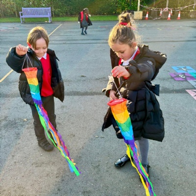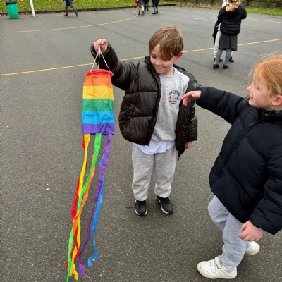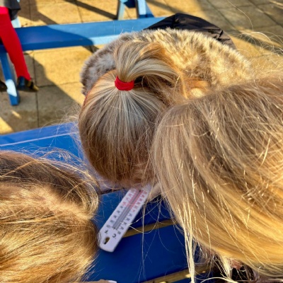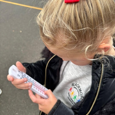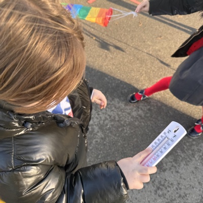 In science we have been learning about seasonal changes. We have enjoyed observing the weather using a wind sock and a thermometer and recordings our findings.