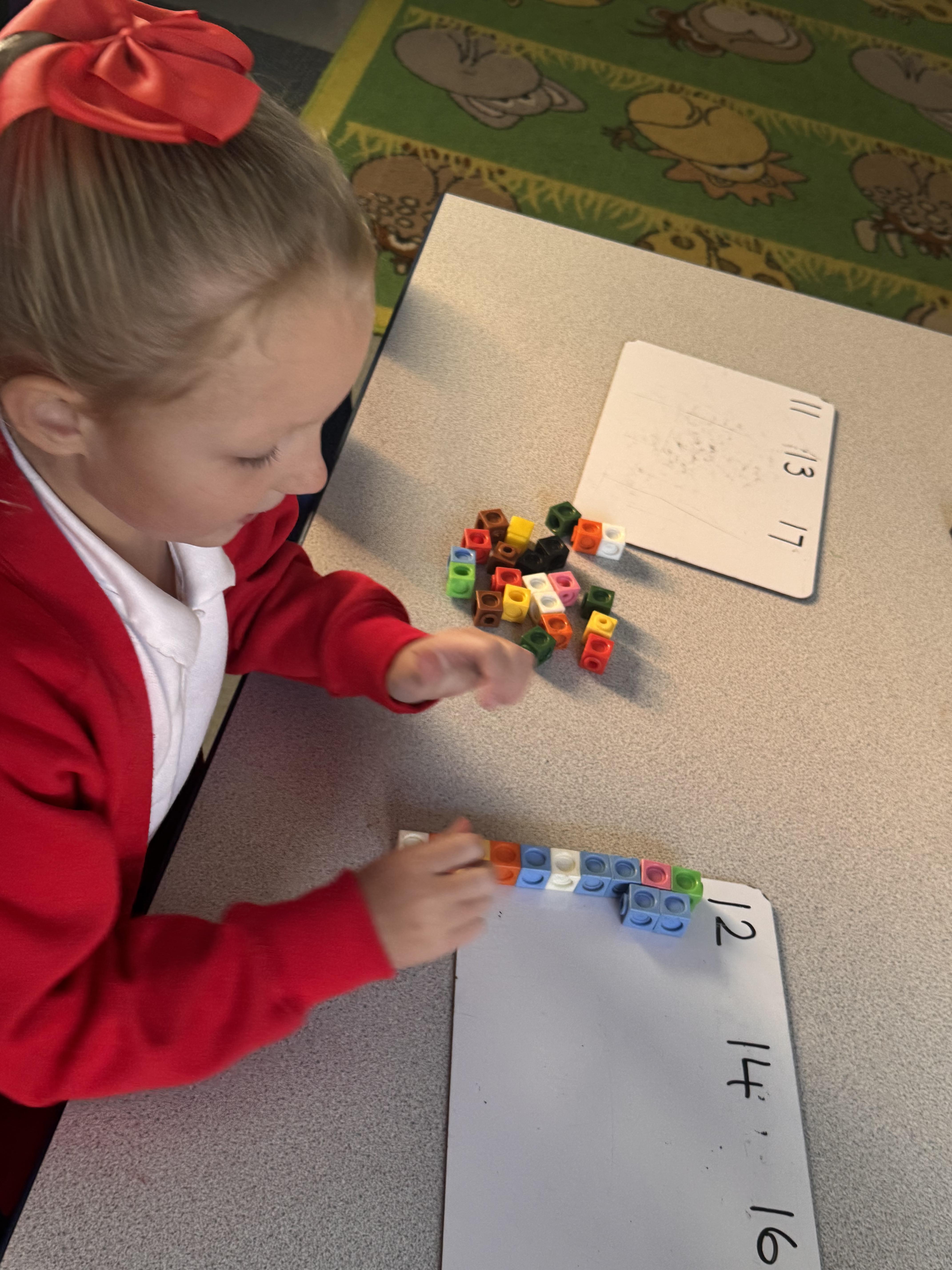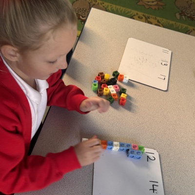 In maths we are working hard to represent numbers beyond 10. We have been representing numbers using multilink, base 10, rekenreks, bead strings and numicon! Representing our maths in lots of ways helps us to understand and master our learning!