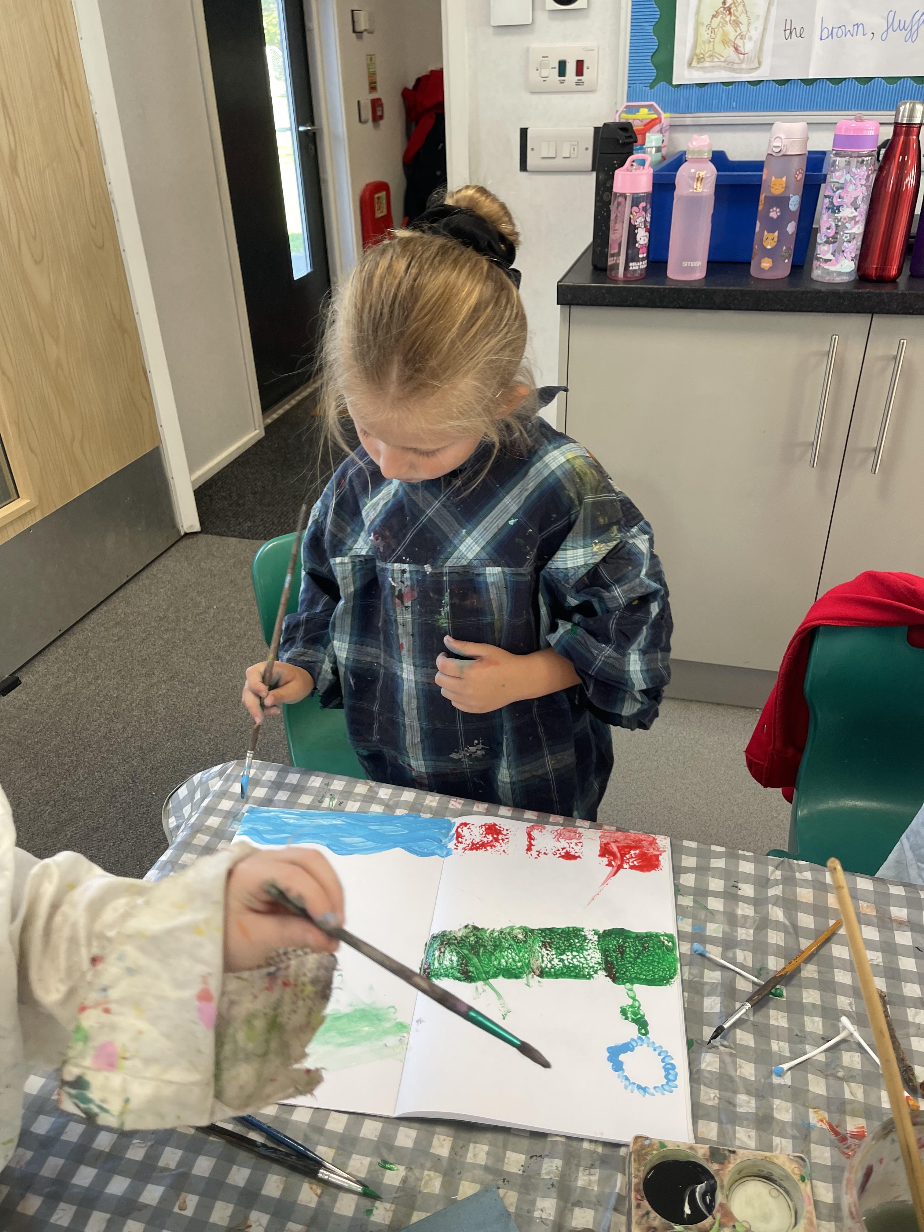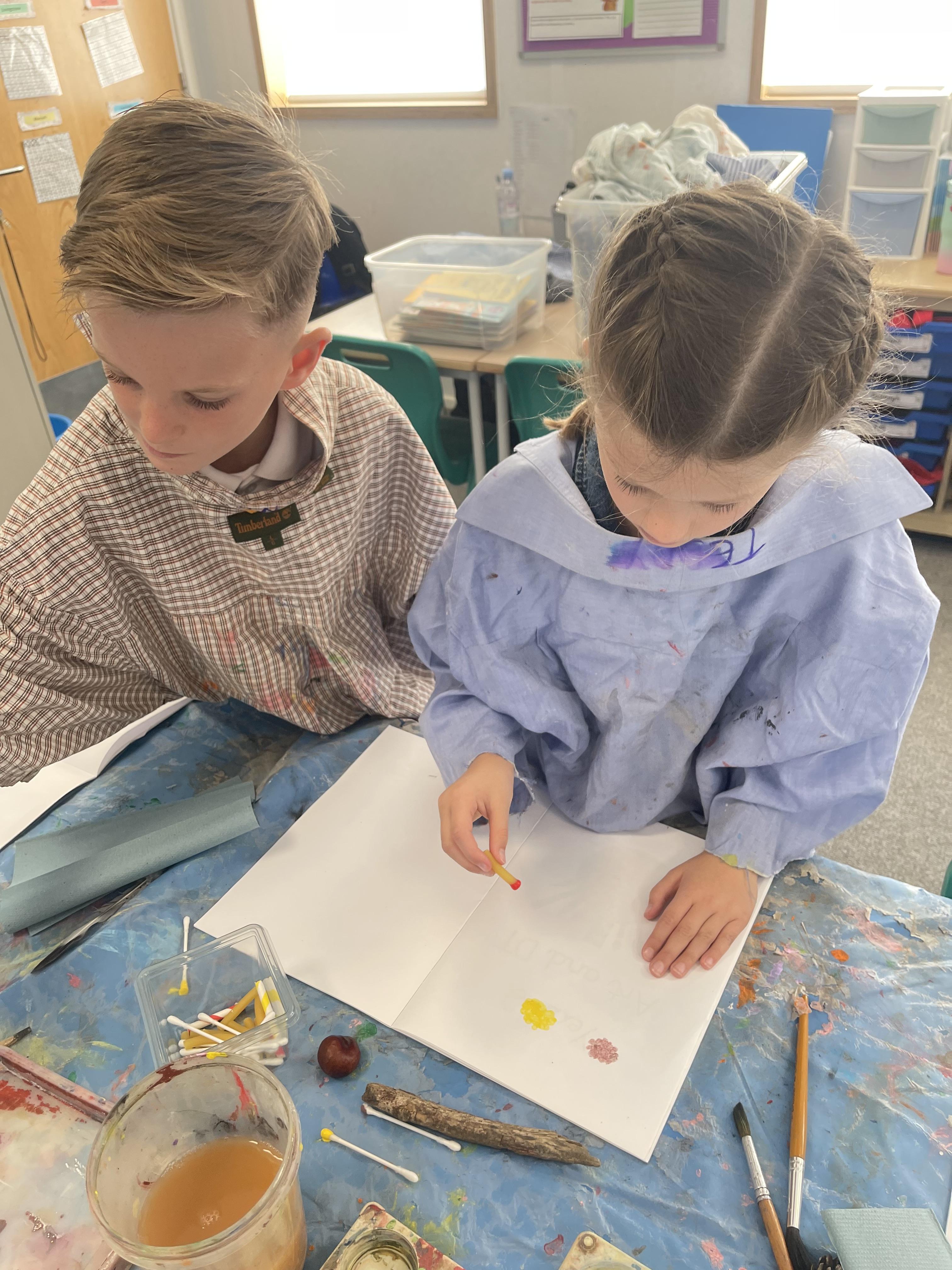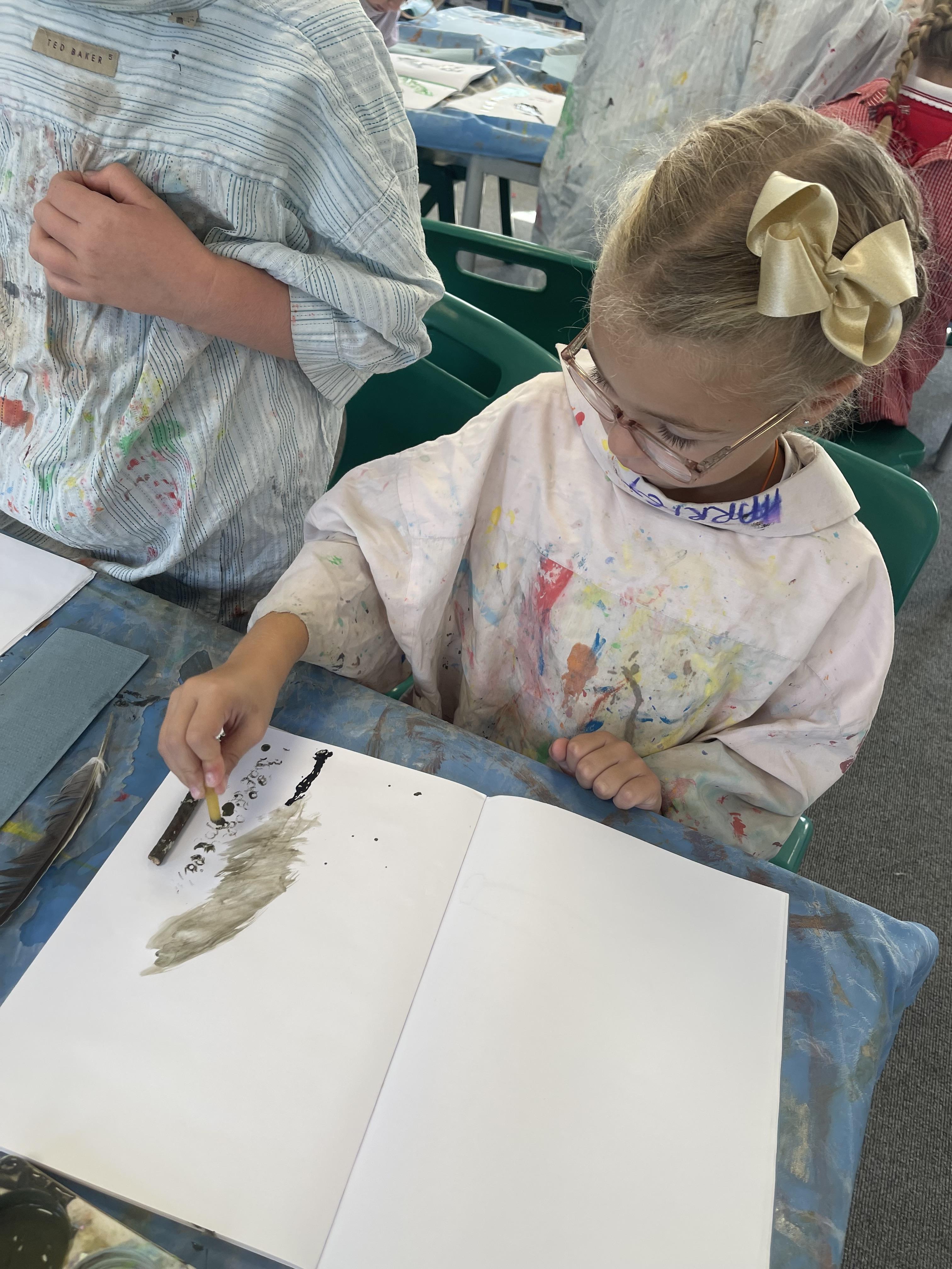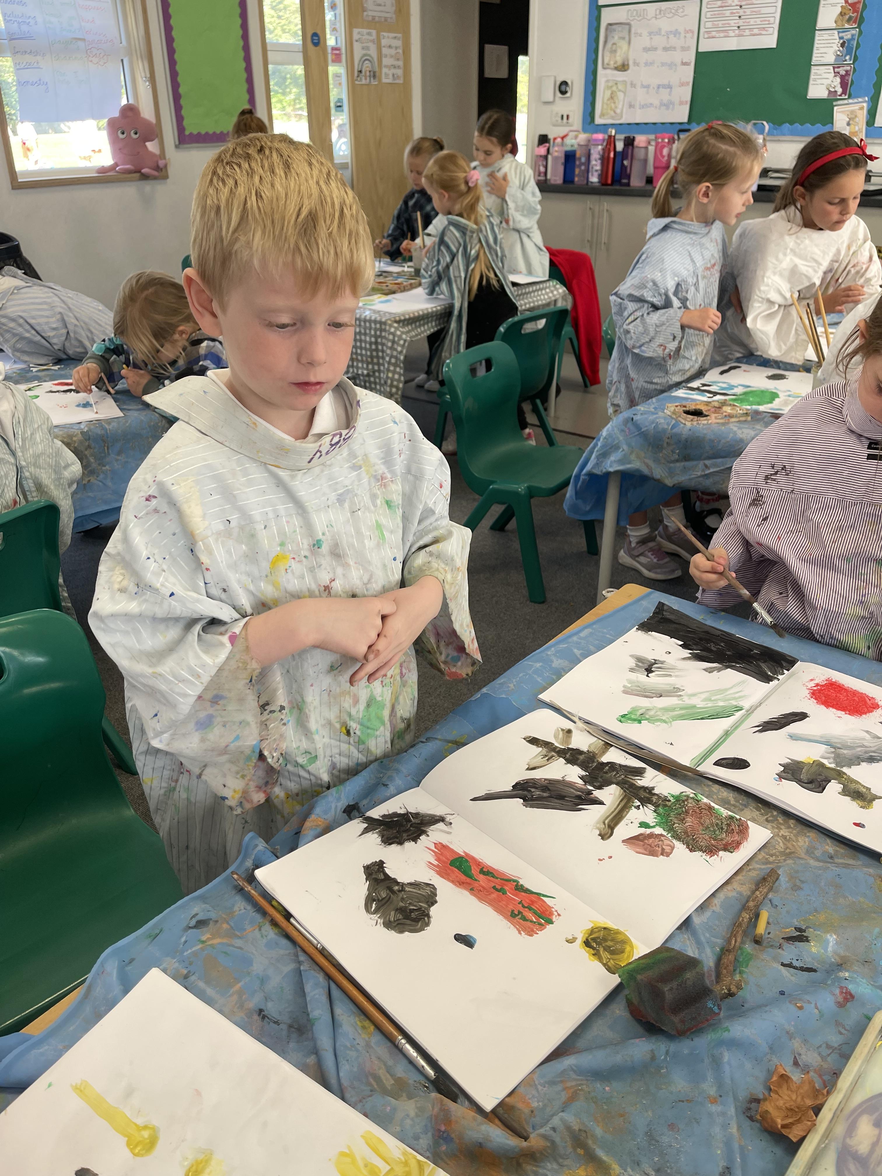 Class 2 worked really hard this afternoon, using their imaginations to turn spillages and rips in paper into beautiful art work!