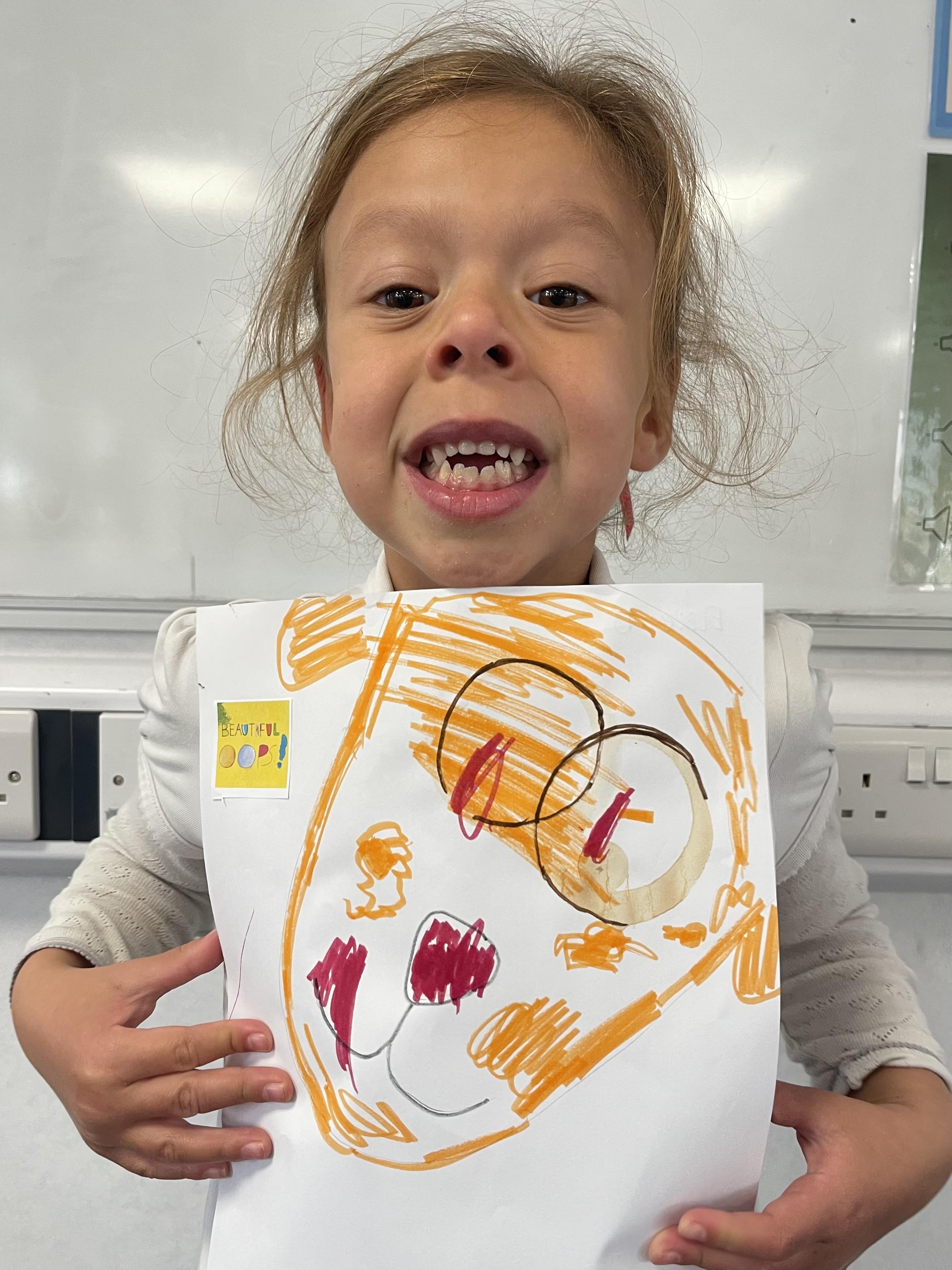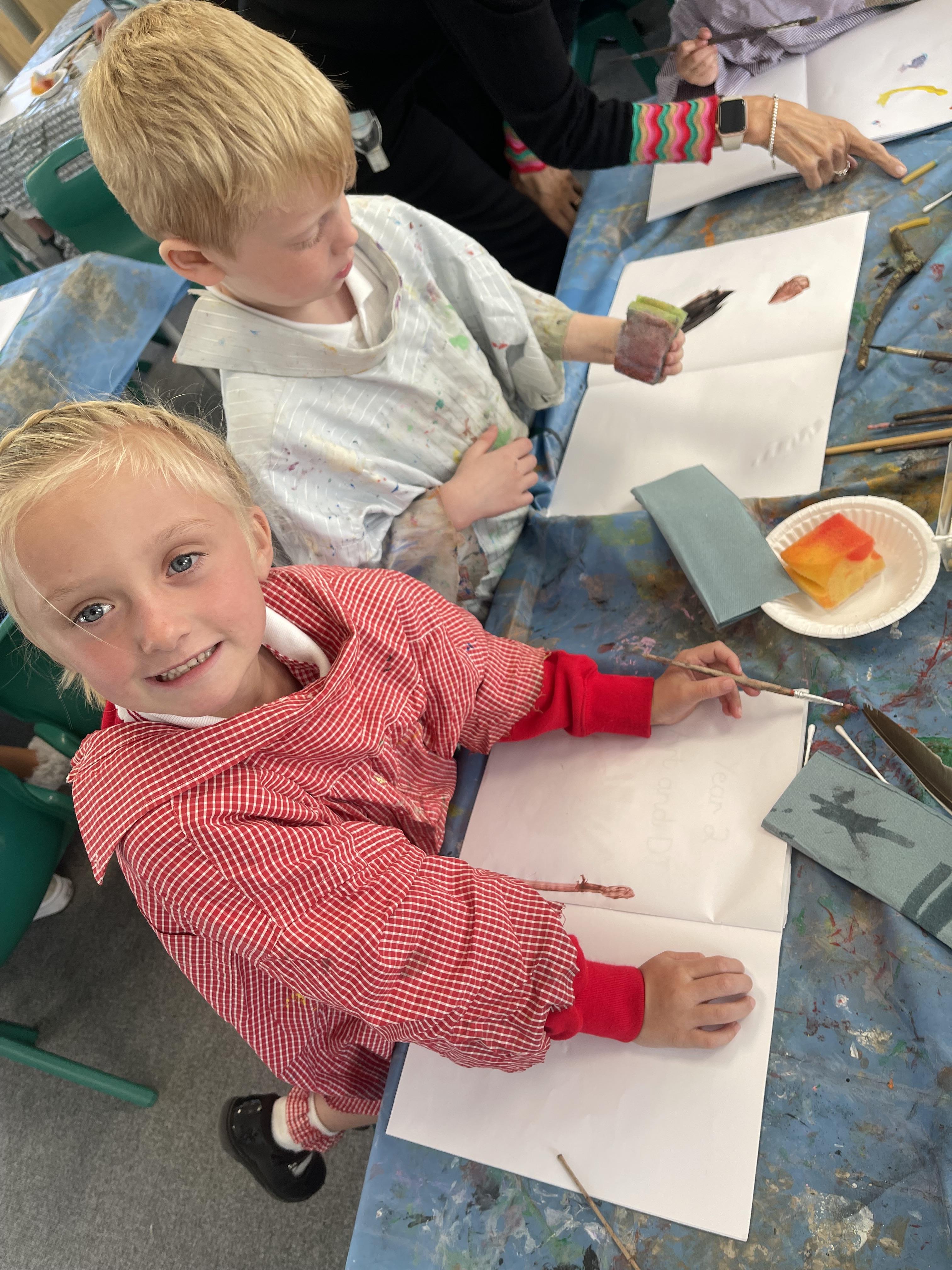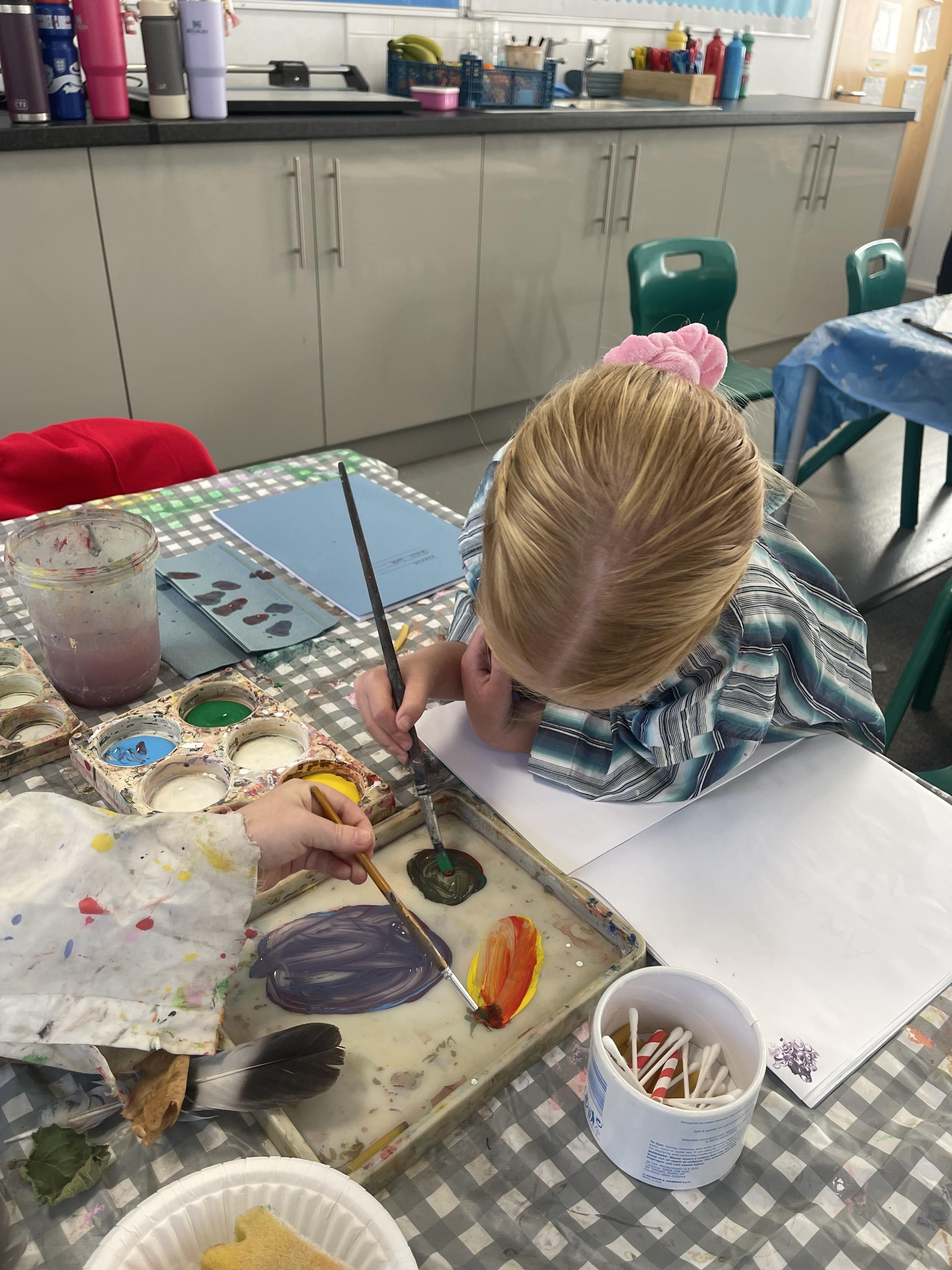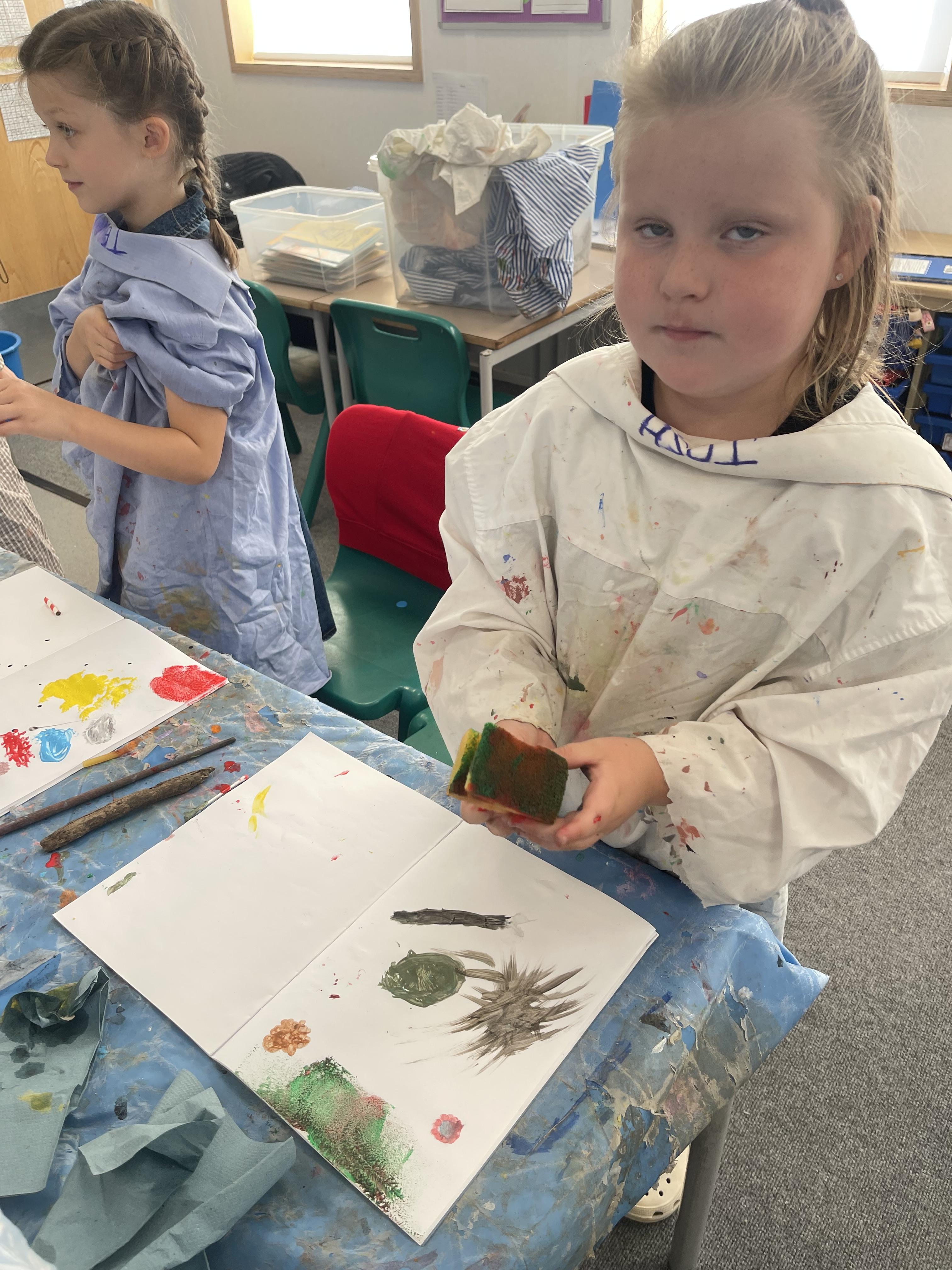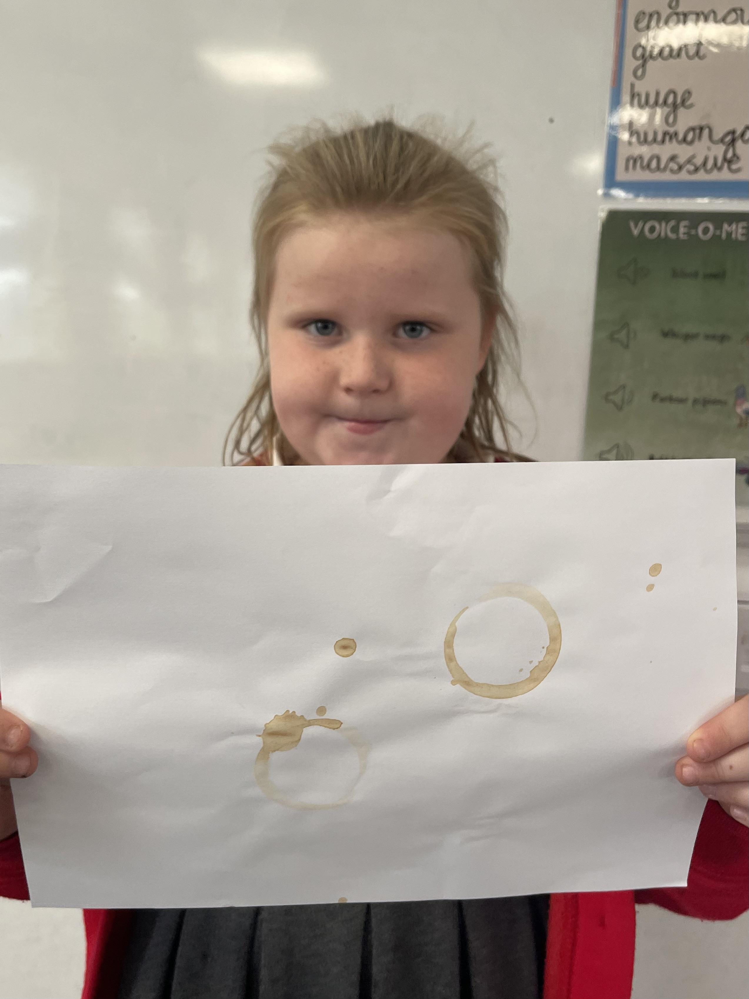 Class 2 worked really hard this afternoon, using their imaginations to turn spillages and rips in paper into beautiful art work!