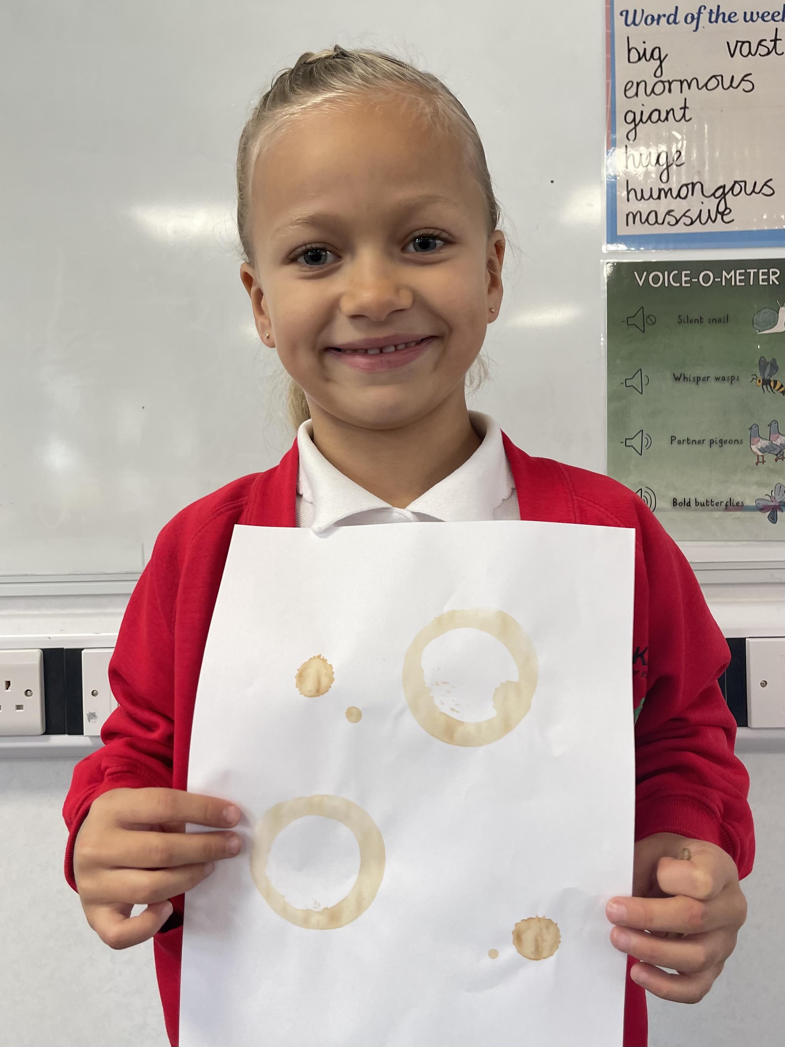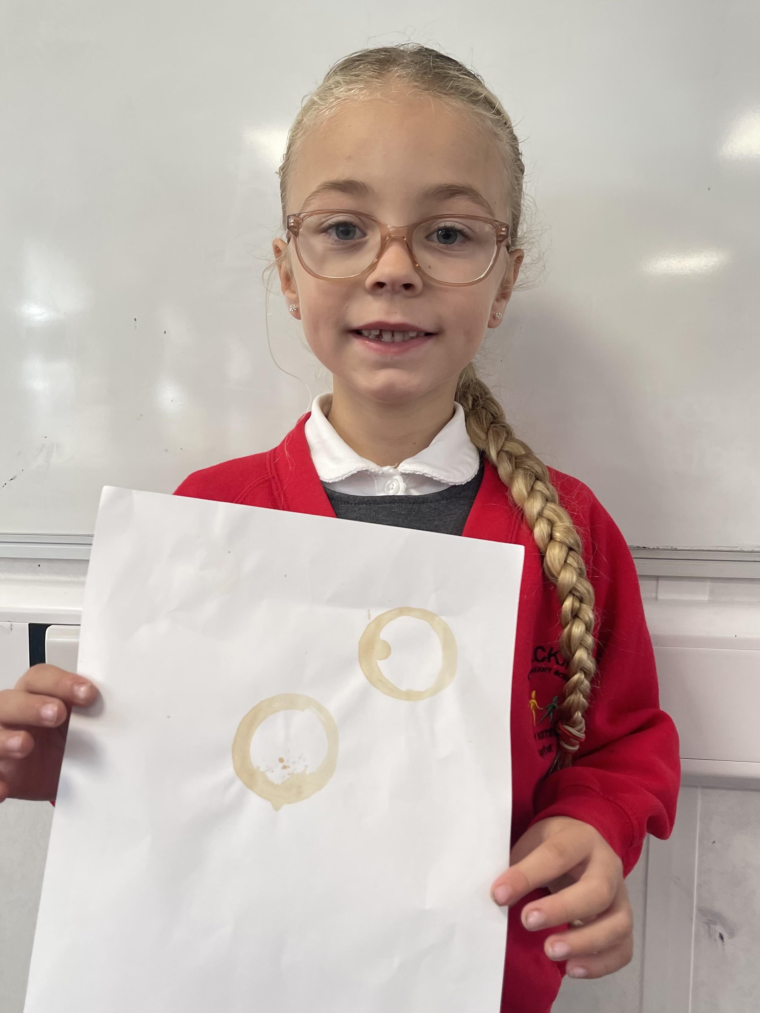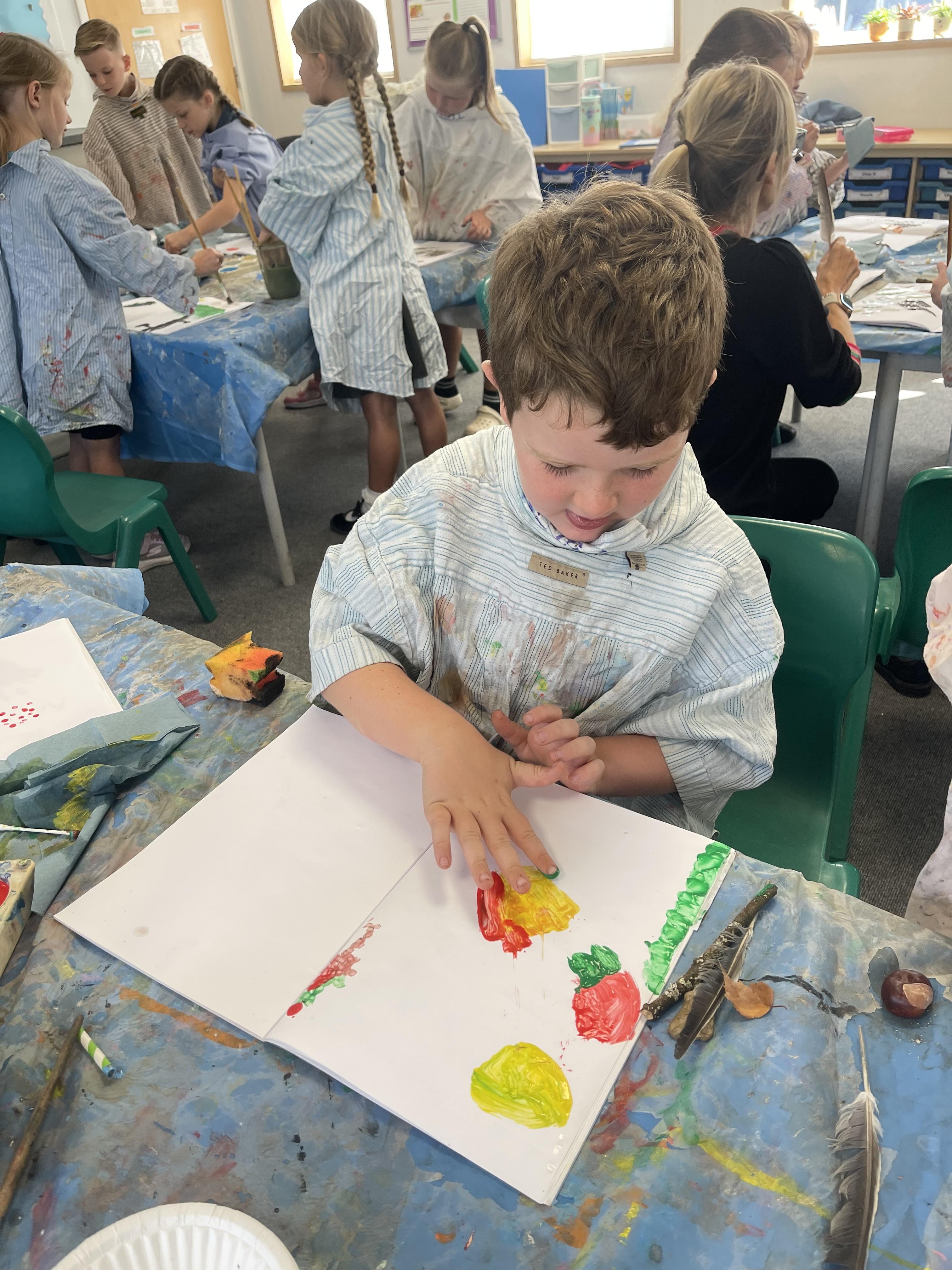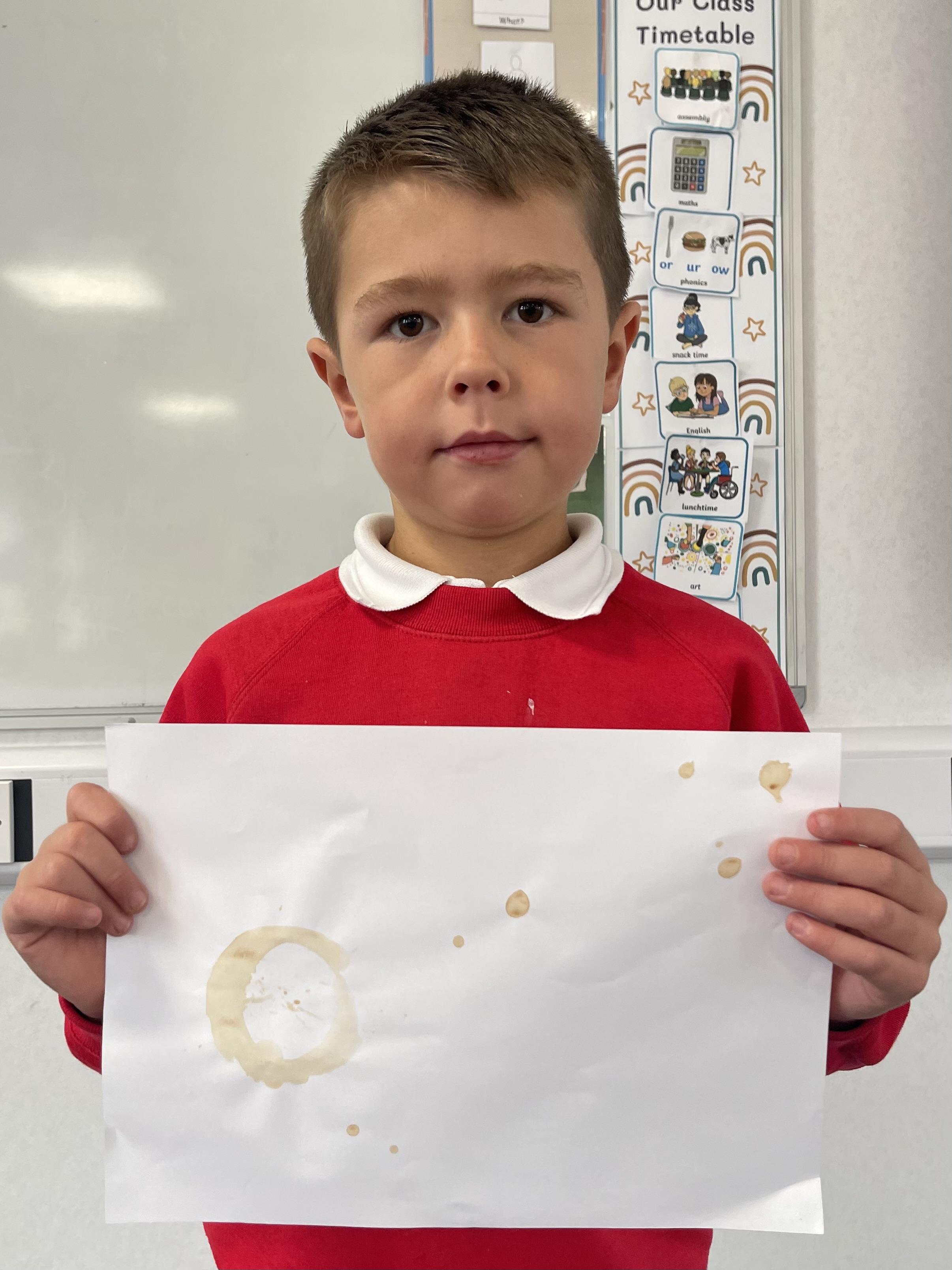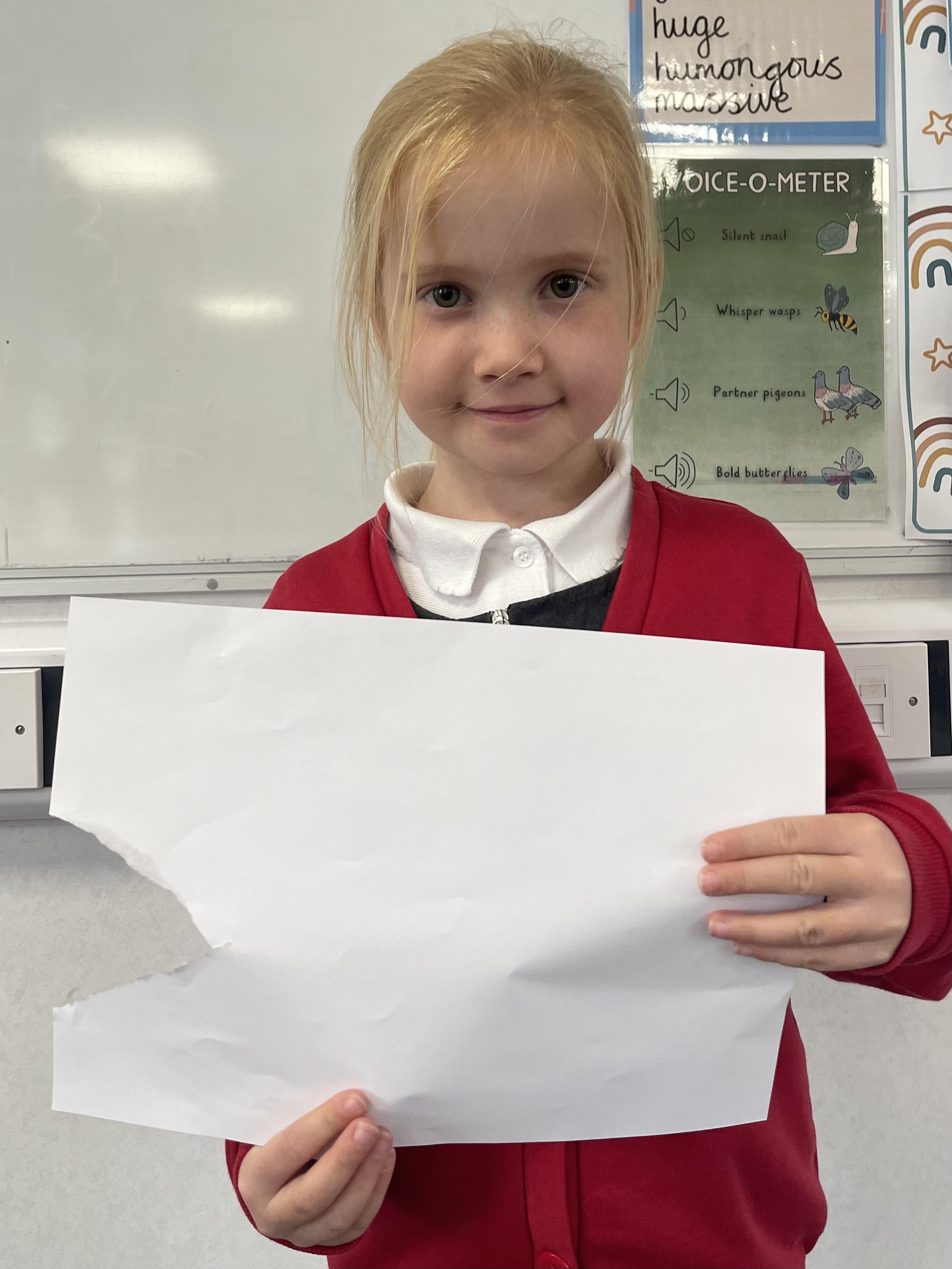 Class 2 worked really hard this afternoon, using their imaginations to turn spillages and rips in paper into beautiful art work!