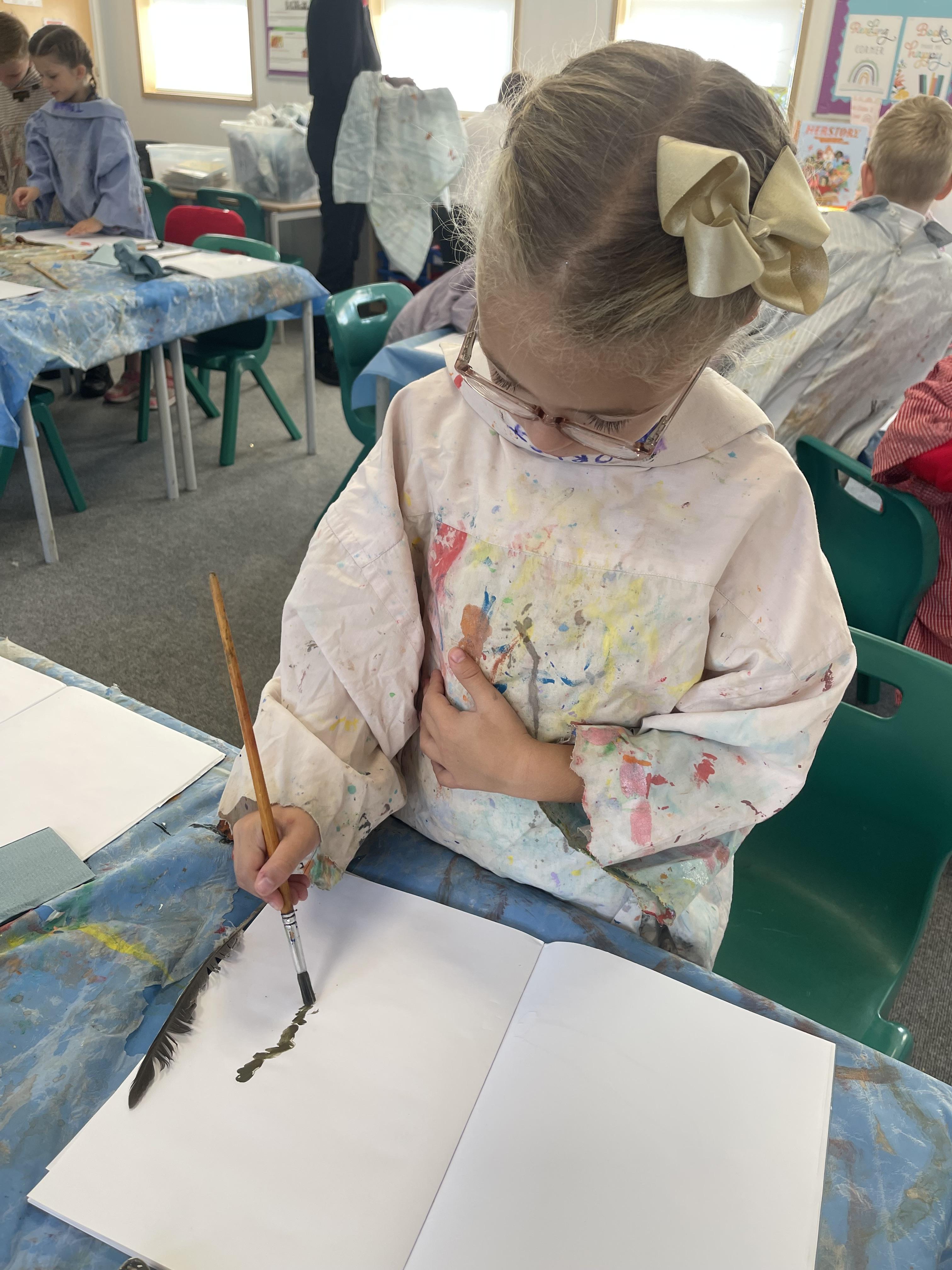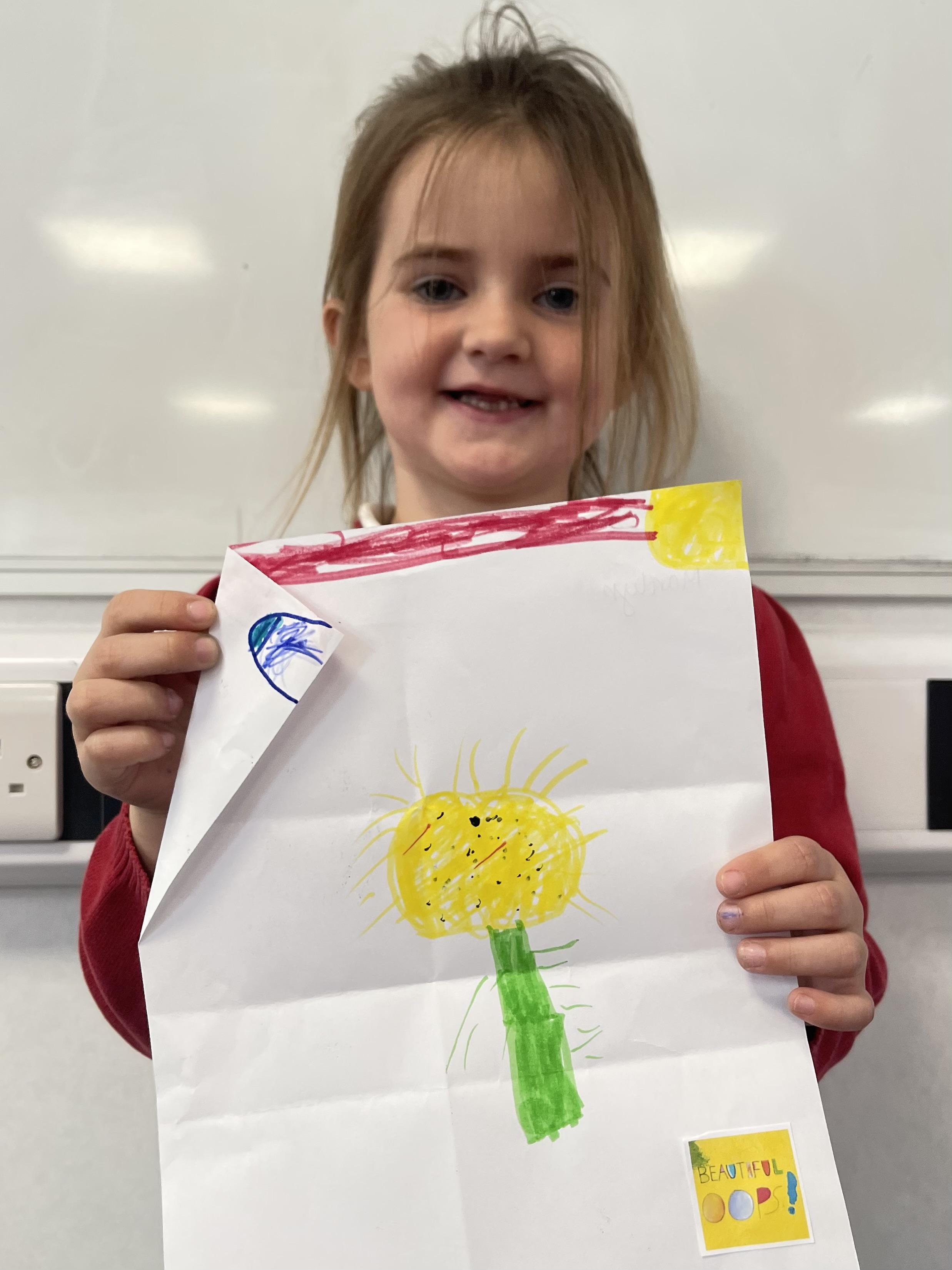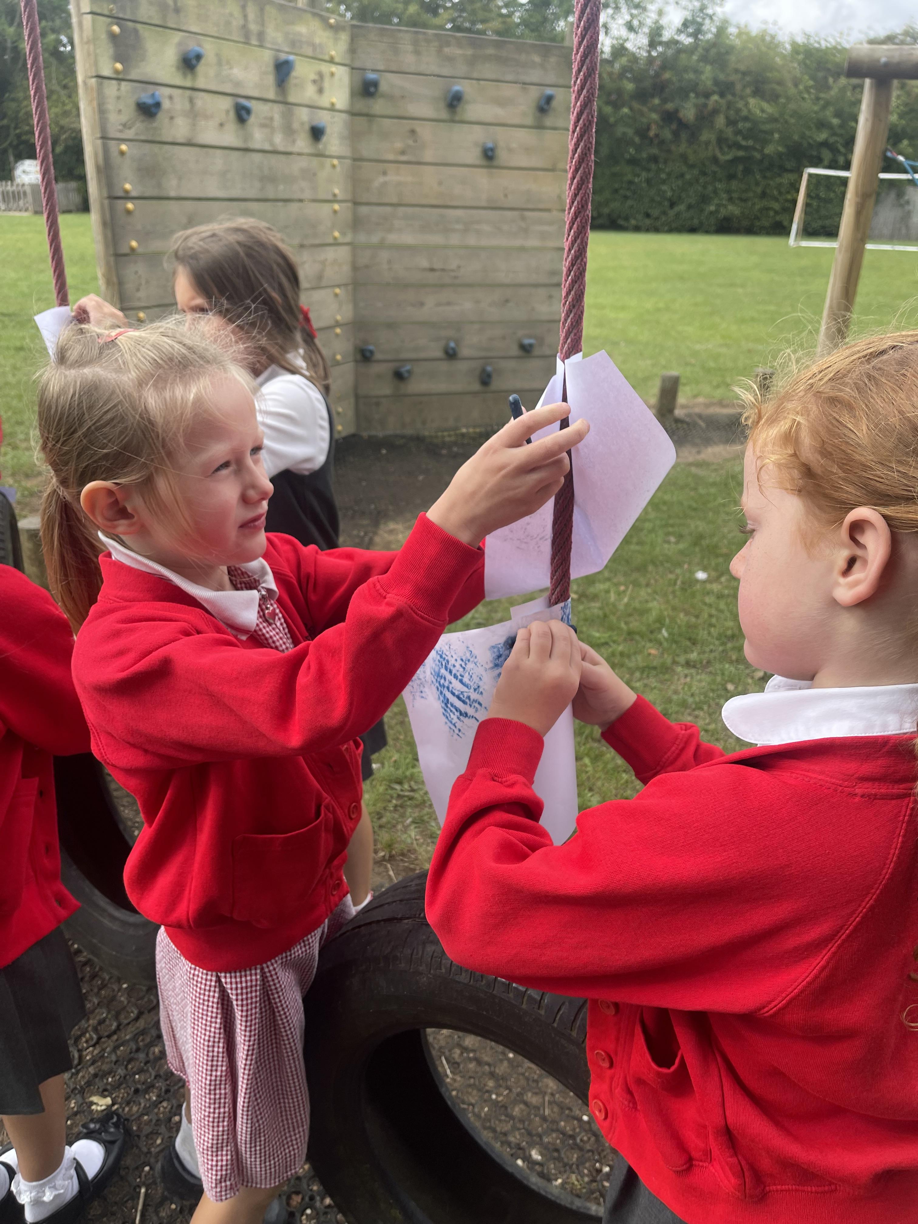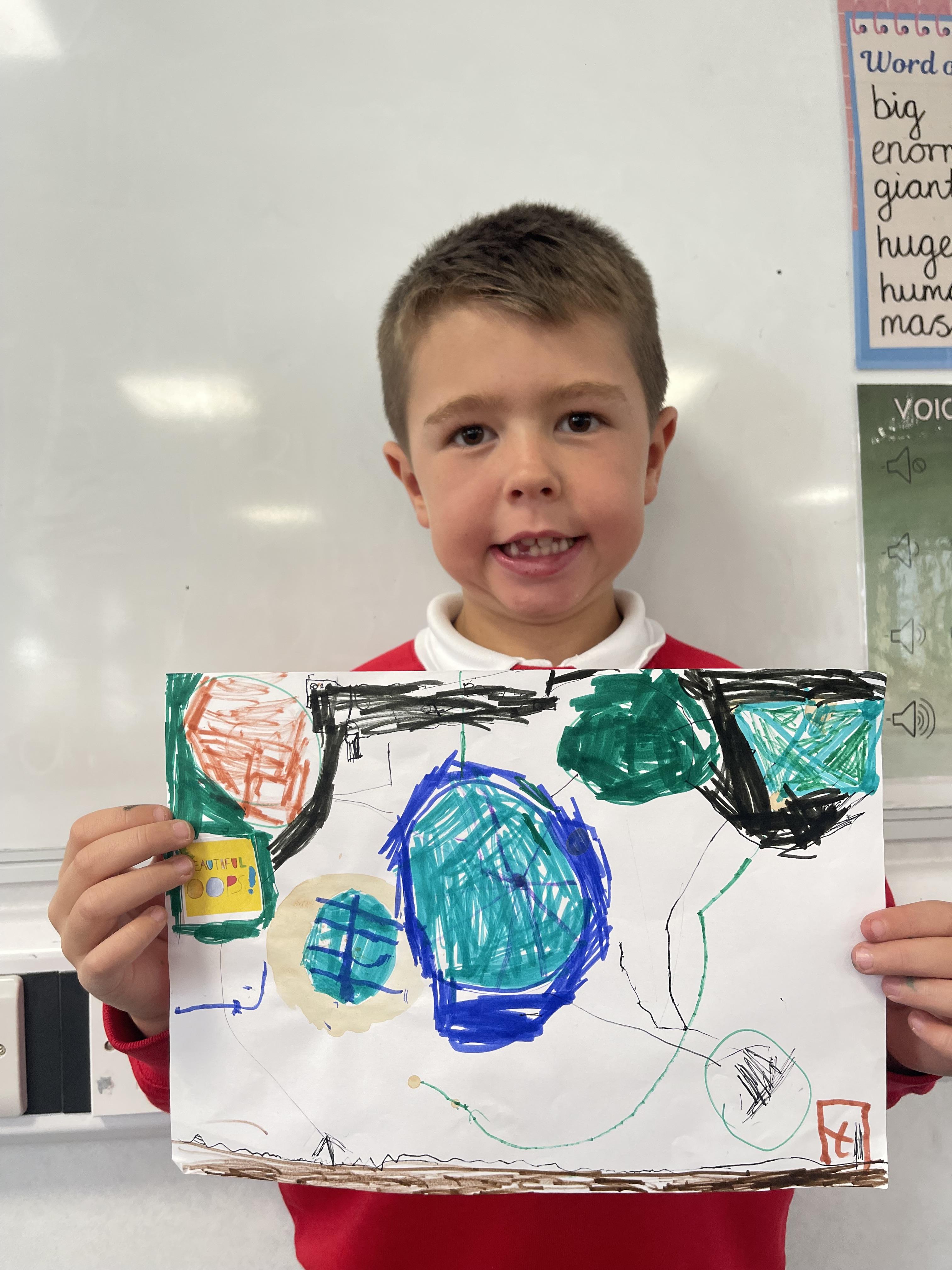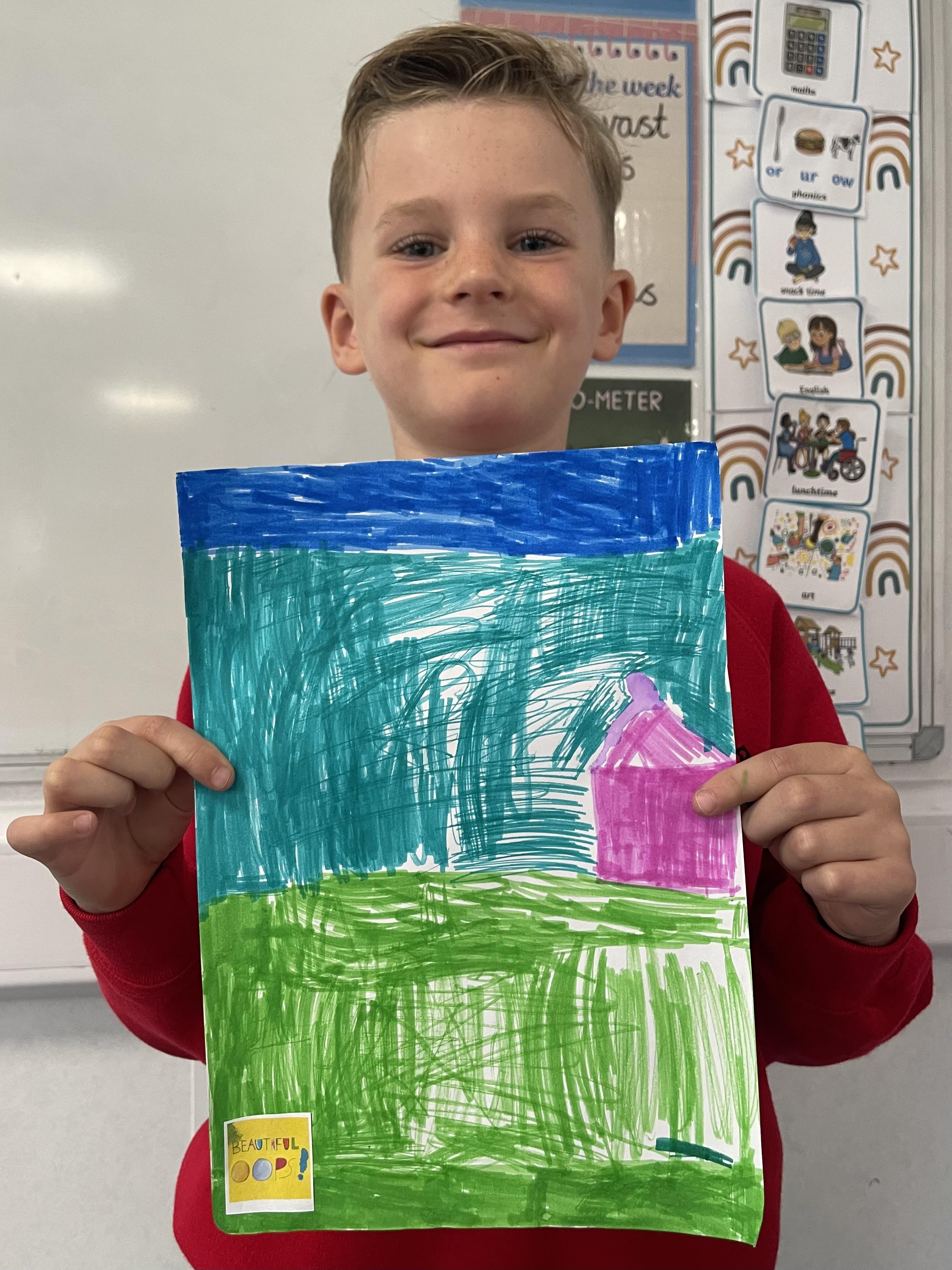 Class 2 worked really hard this afternoon, using their imaginations to turn spillages and rips in paper into beautiful art work!