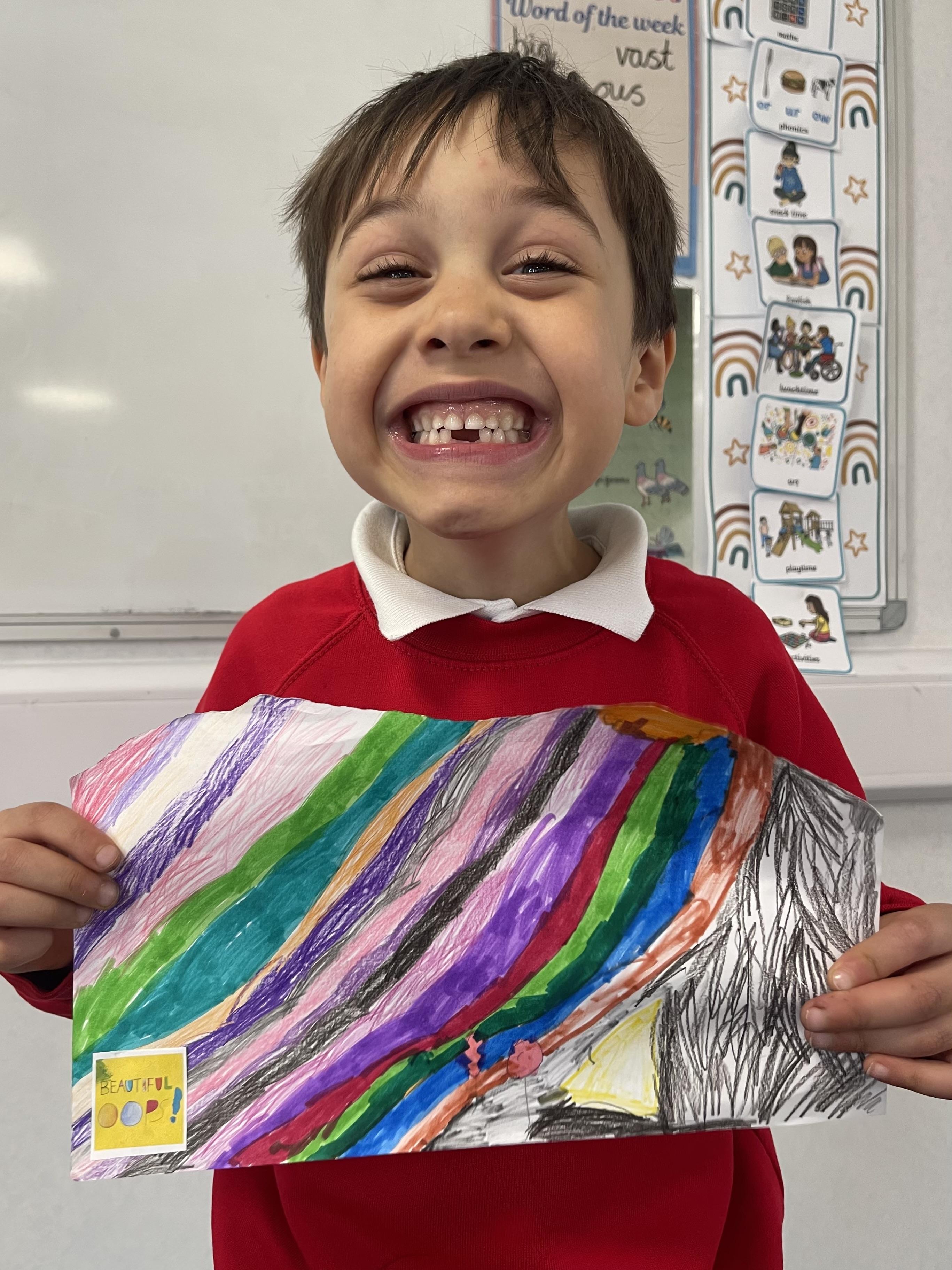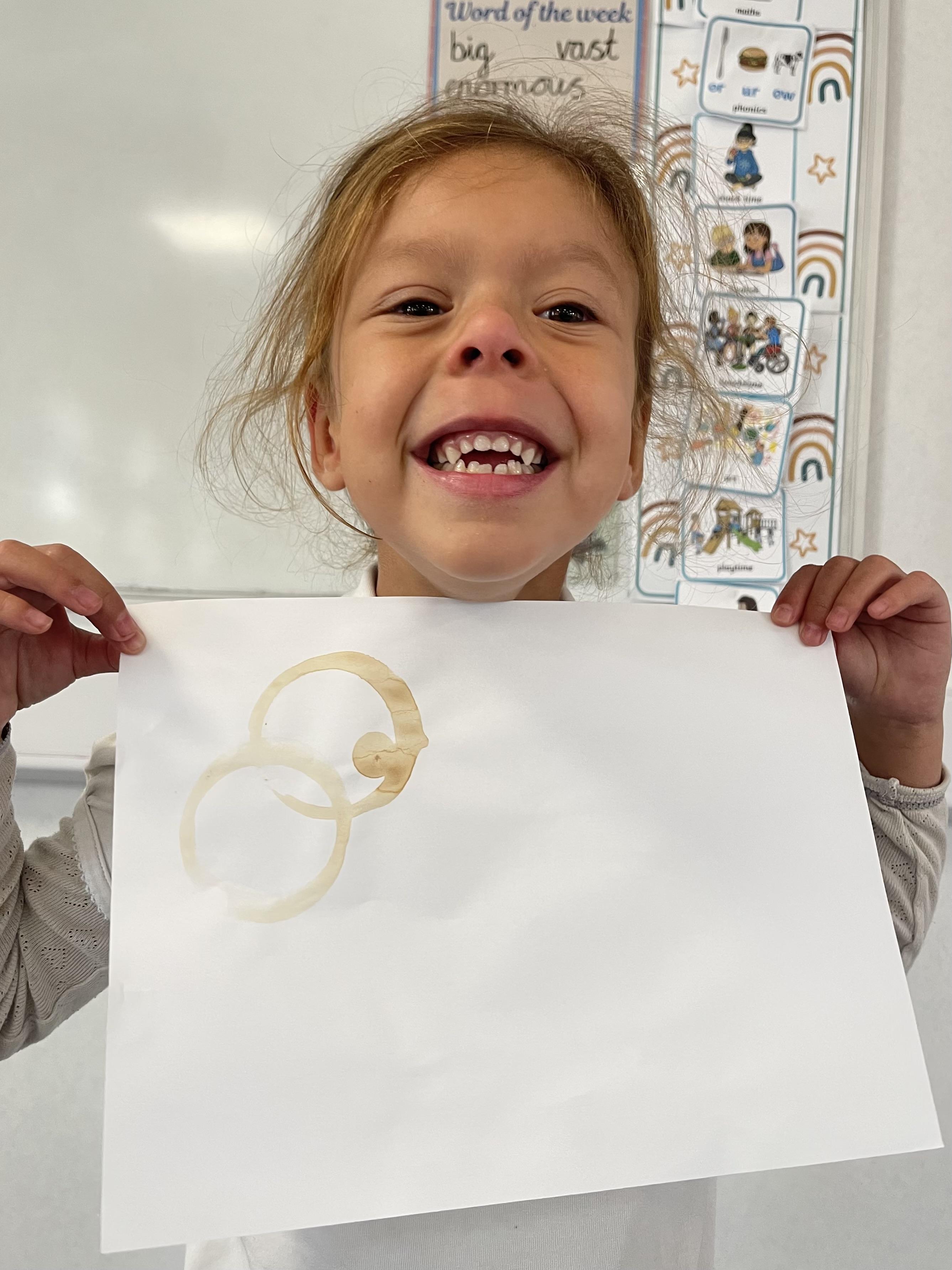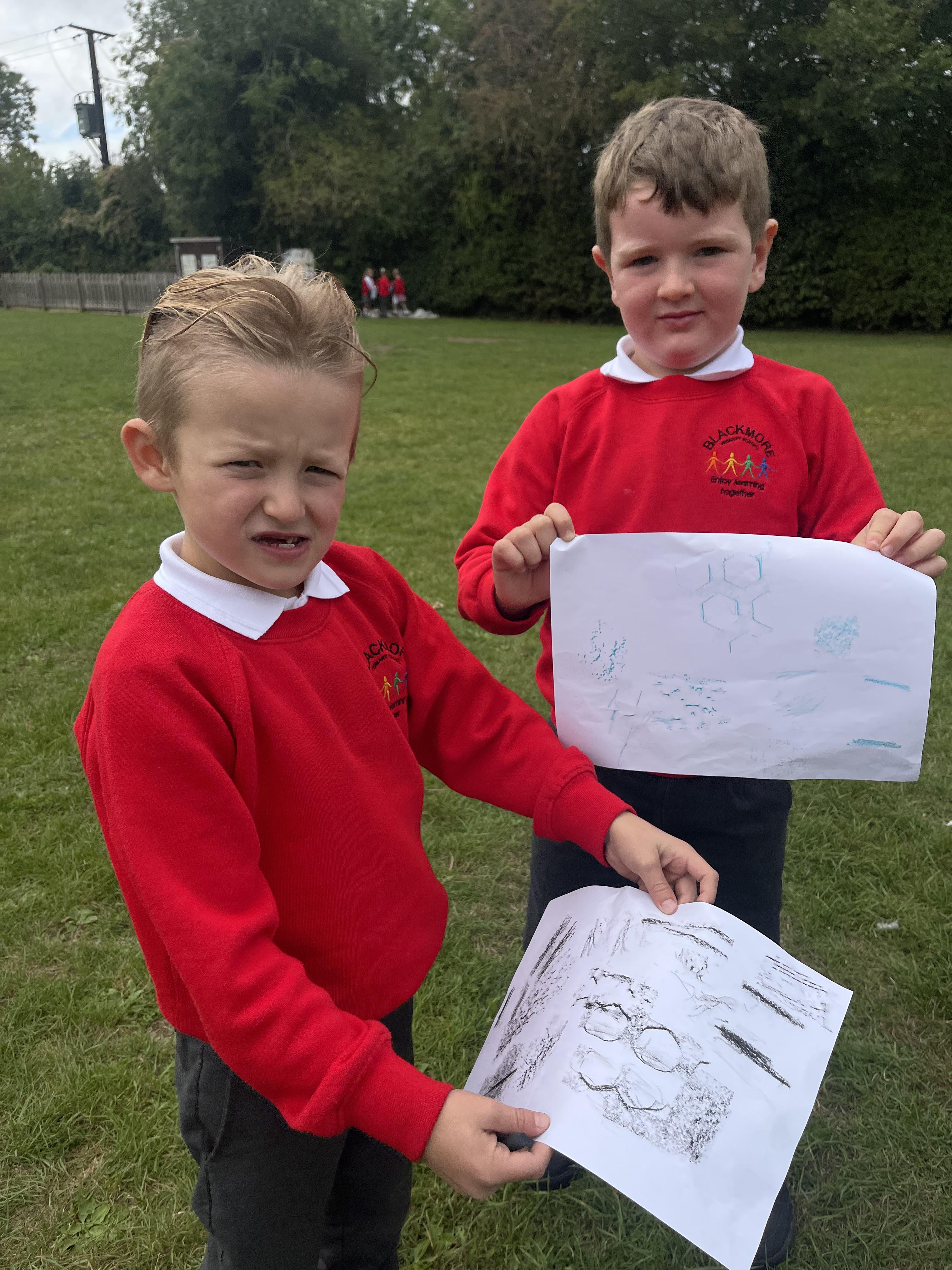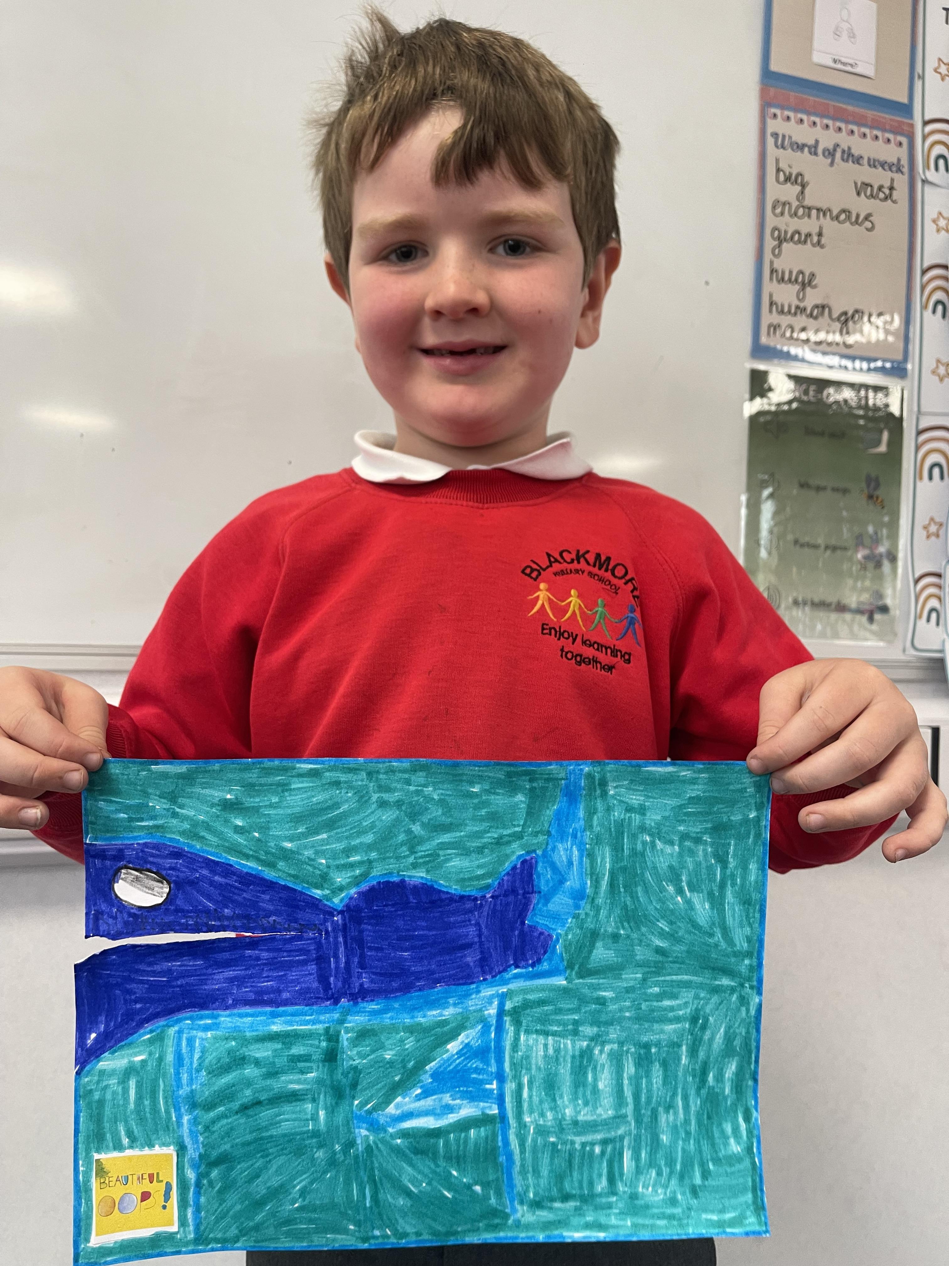 Class 2 worked really hard this afternoon, using their imaginations to turn spillages and rips in paper into beautiful art work!