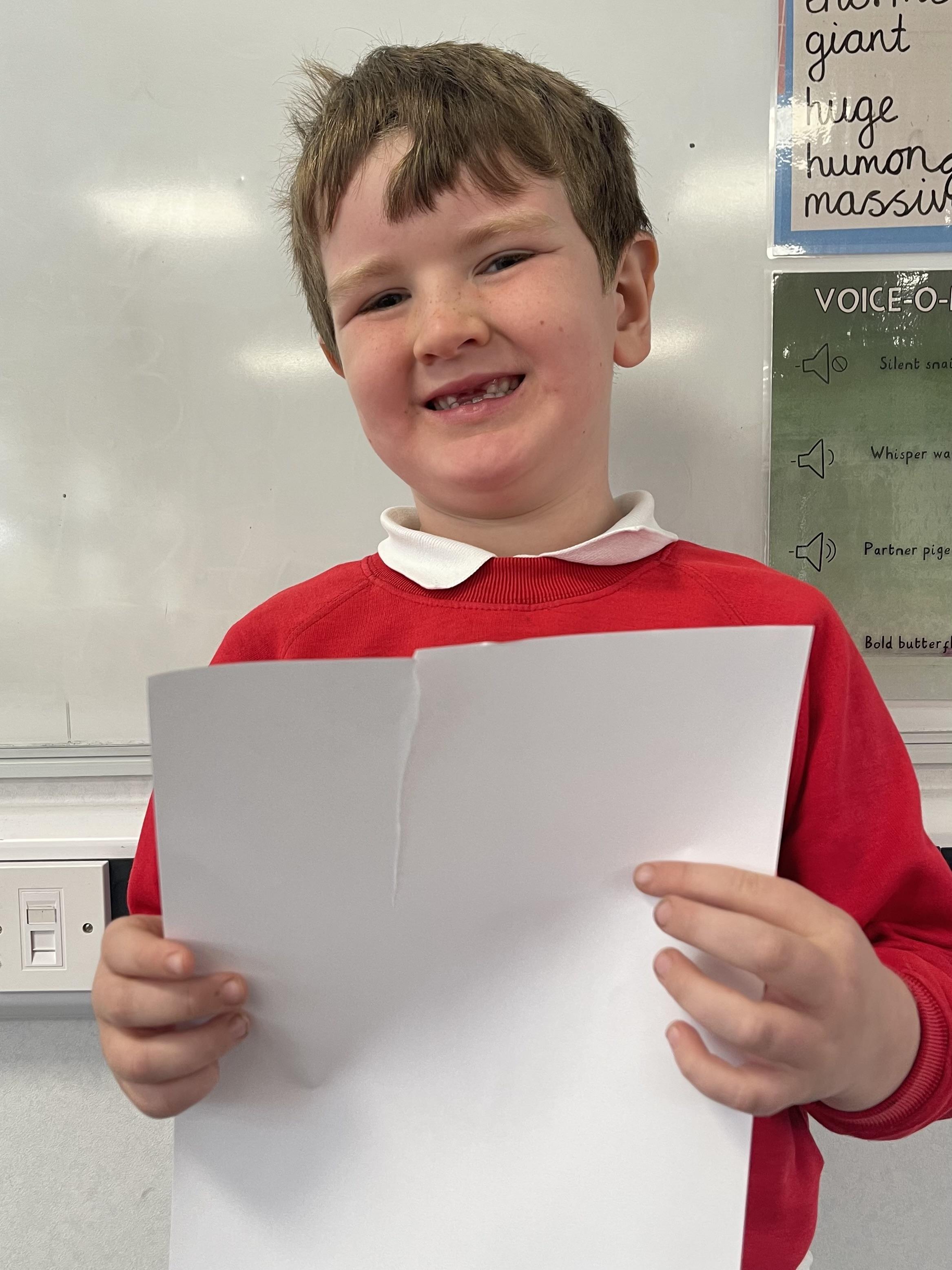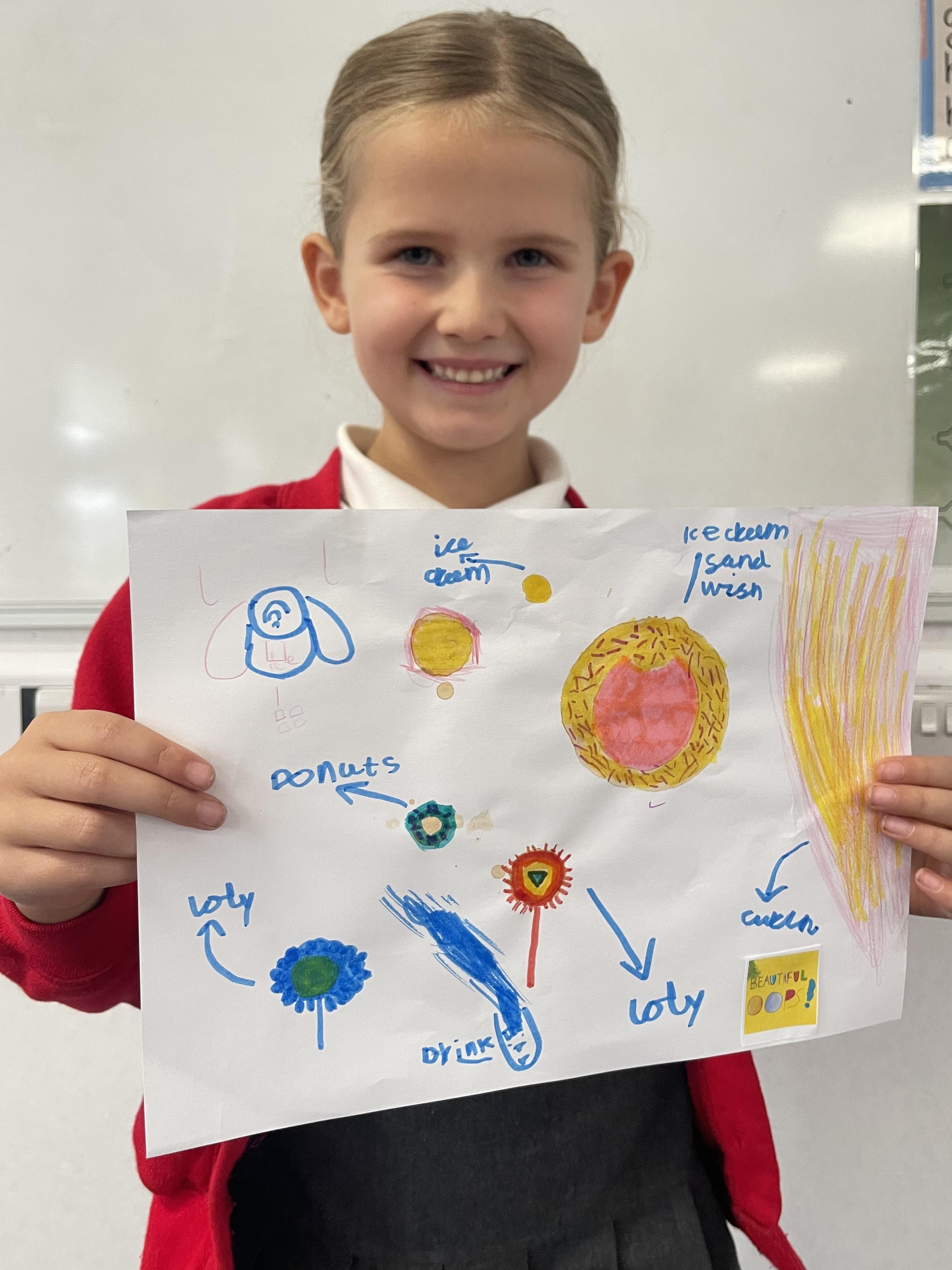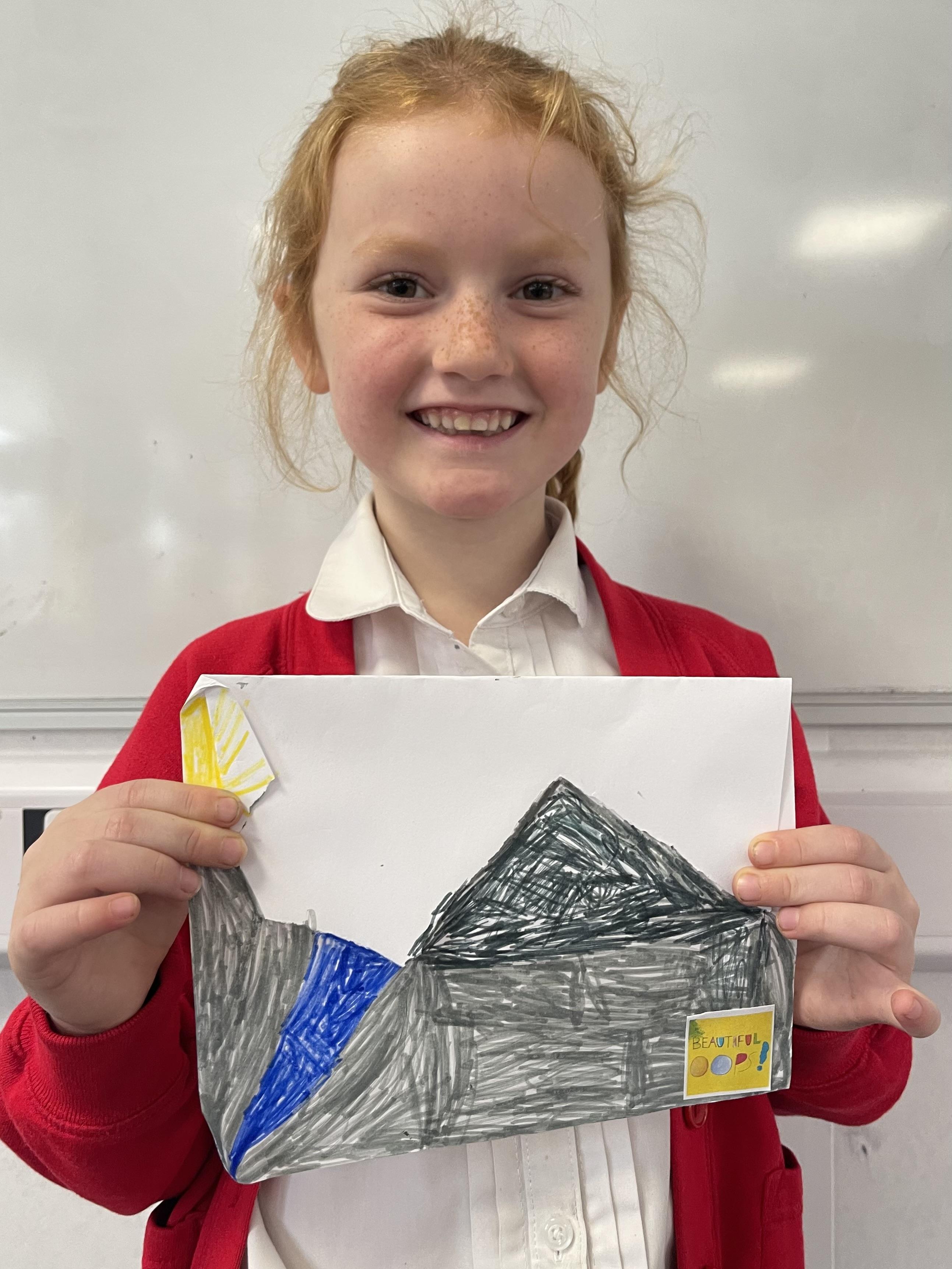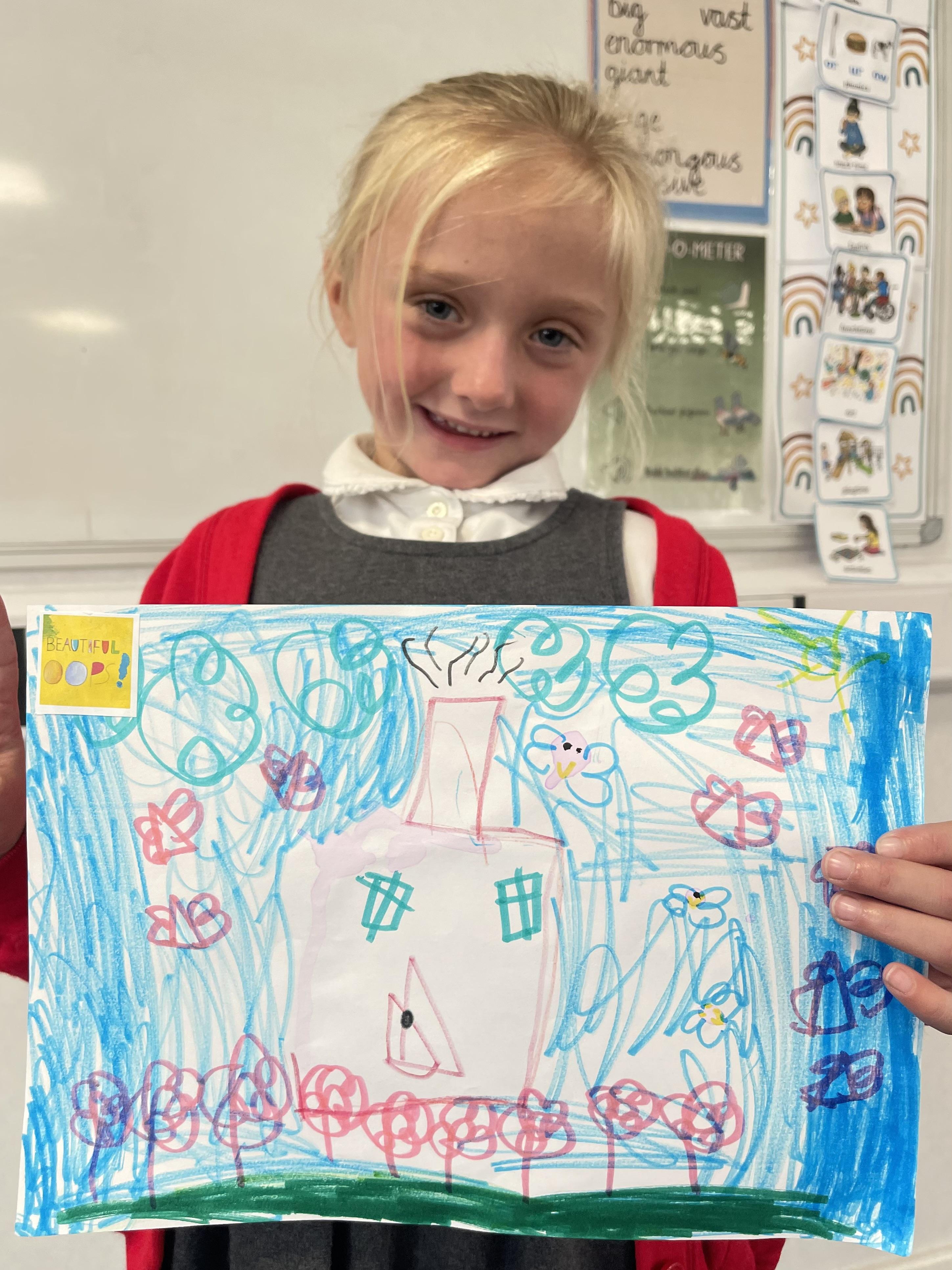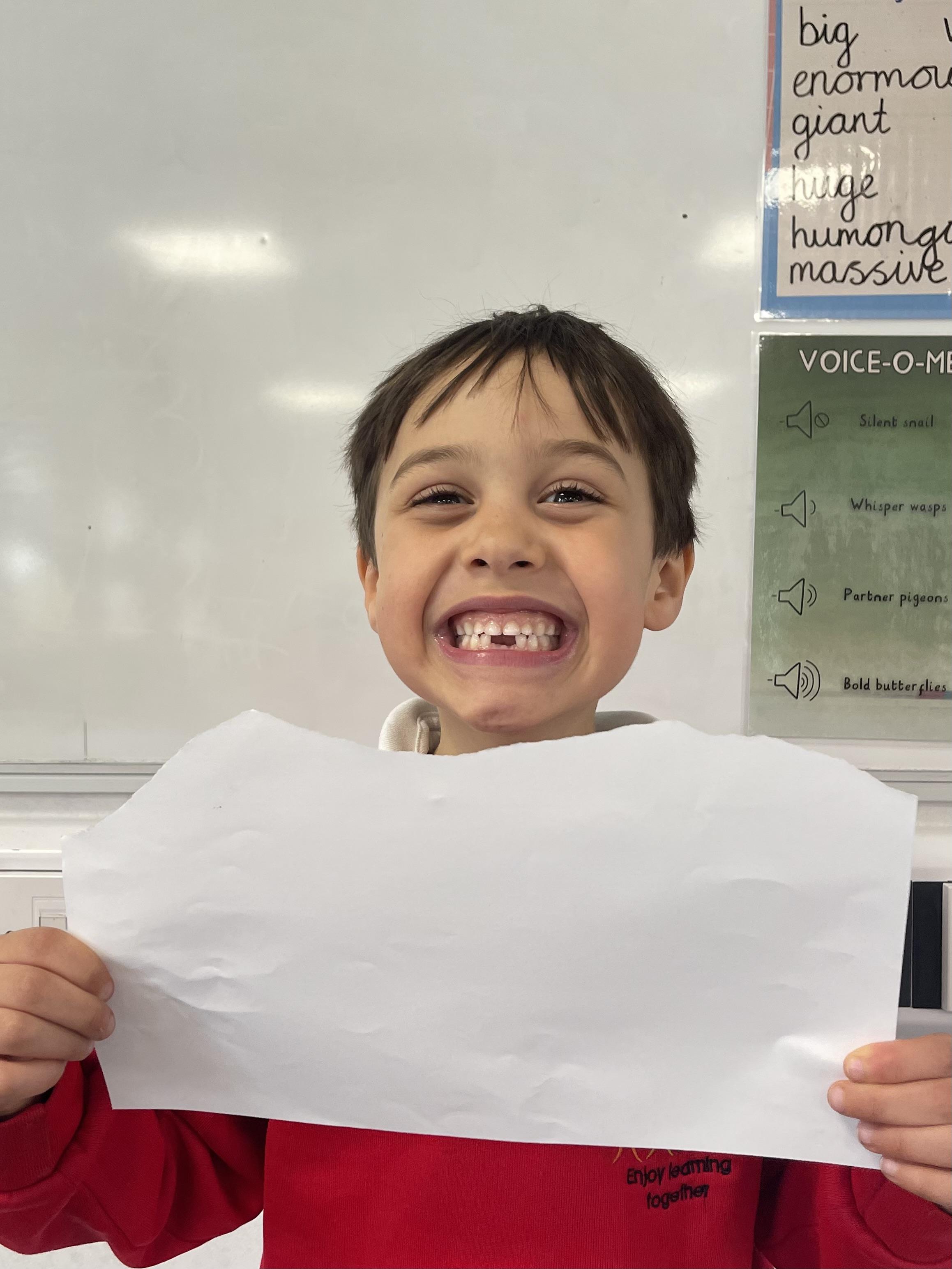 Class 2 worked really hard this afternoon, using their imaginations to turn spillages and rips in paper into beautiful art work!