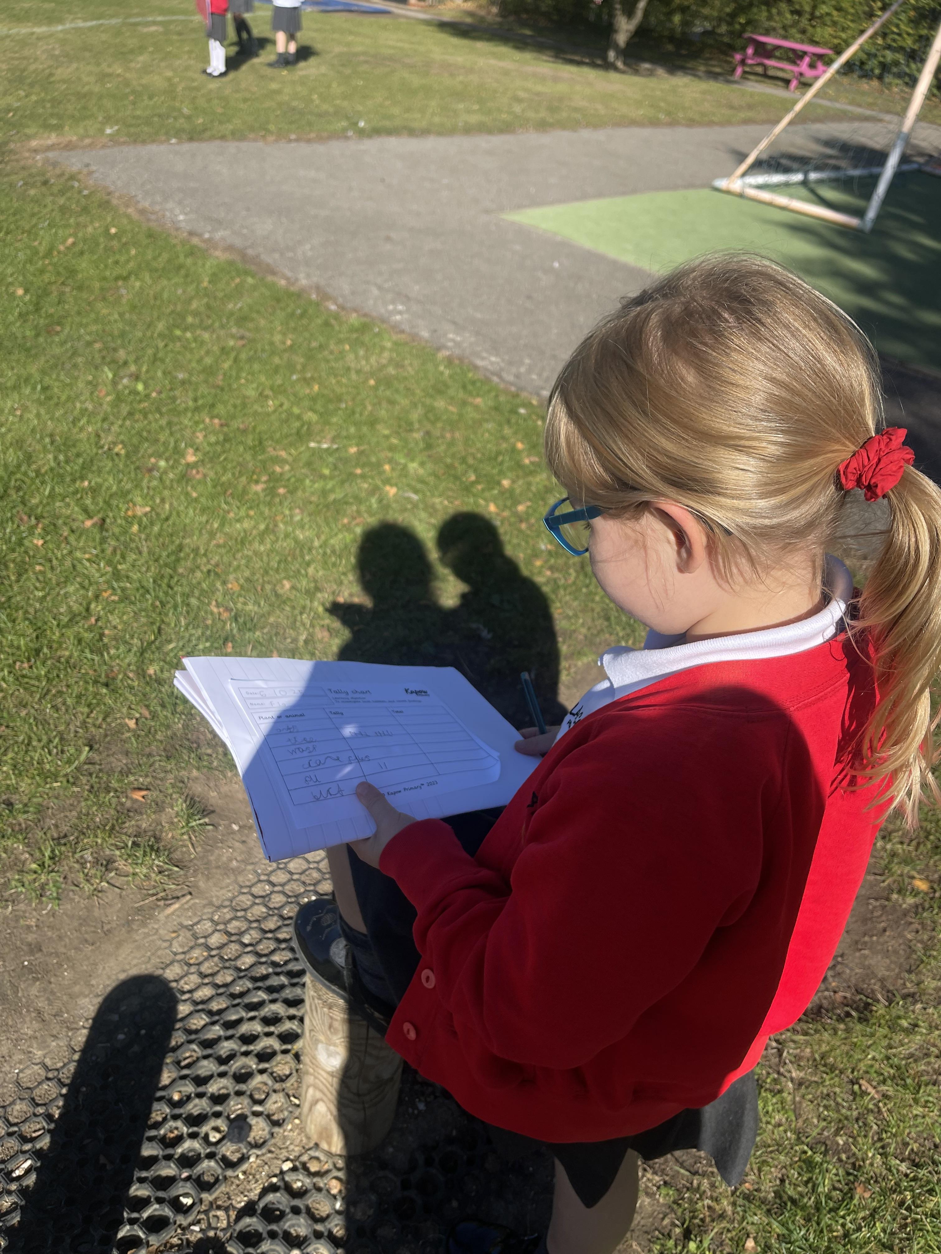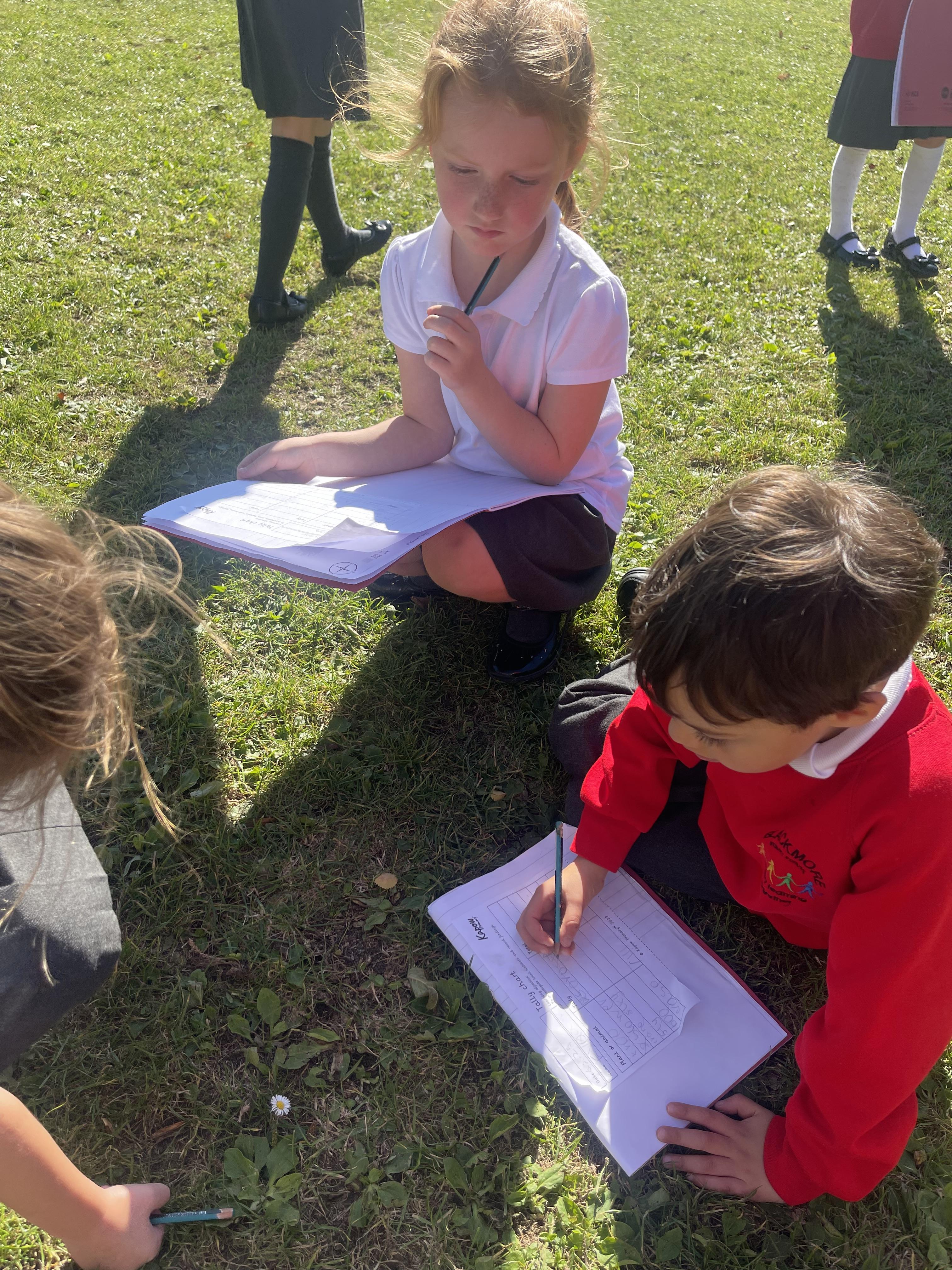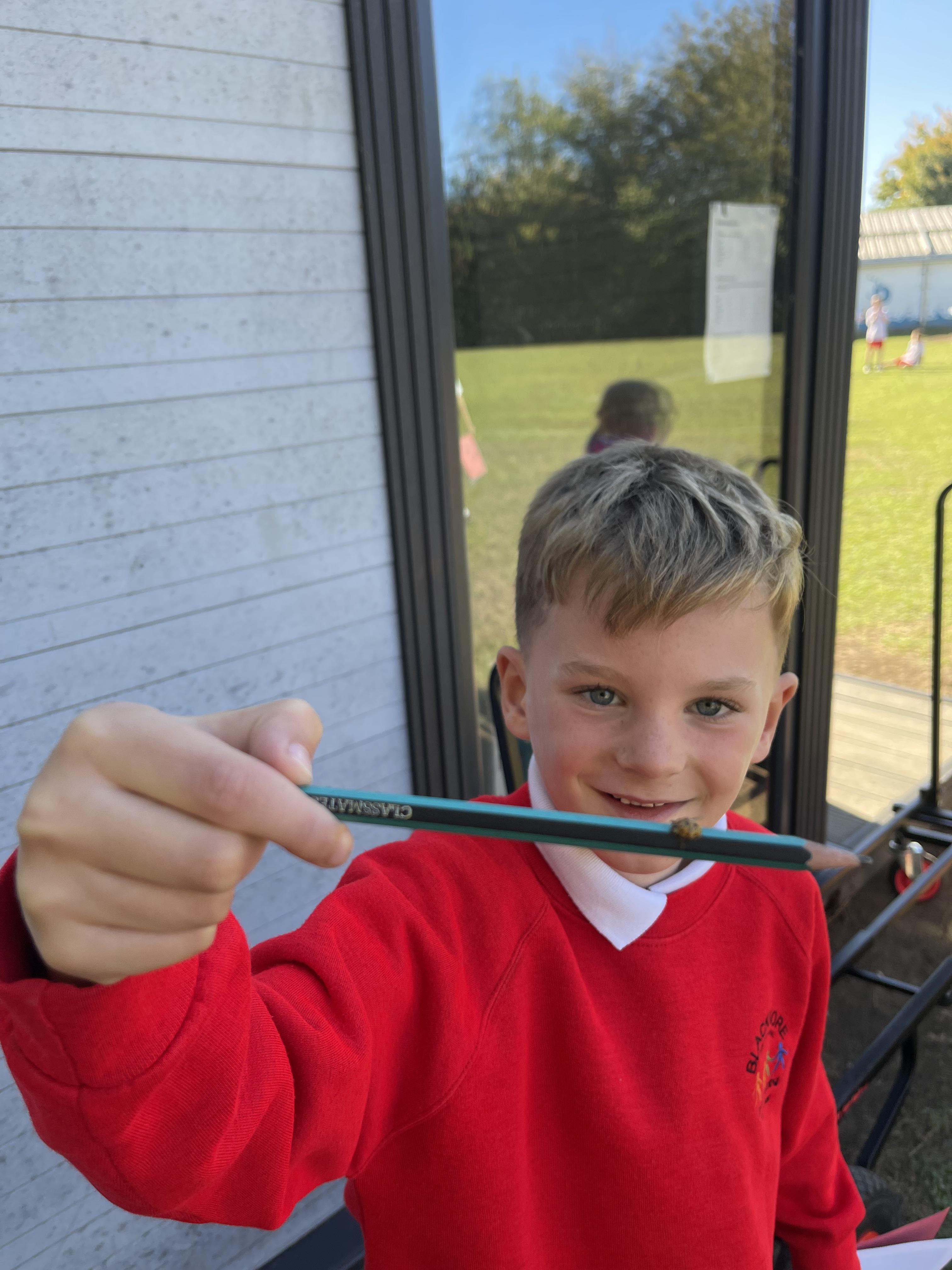 Today Class 2 went on a habitat hunt, to look for different plants, insects and animals on our school field. There were so many ladybirds, landing all over the children, their pencils, books, and even glasses!