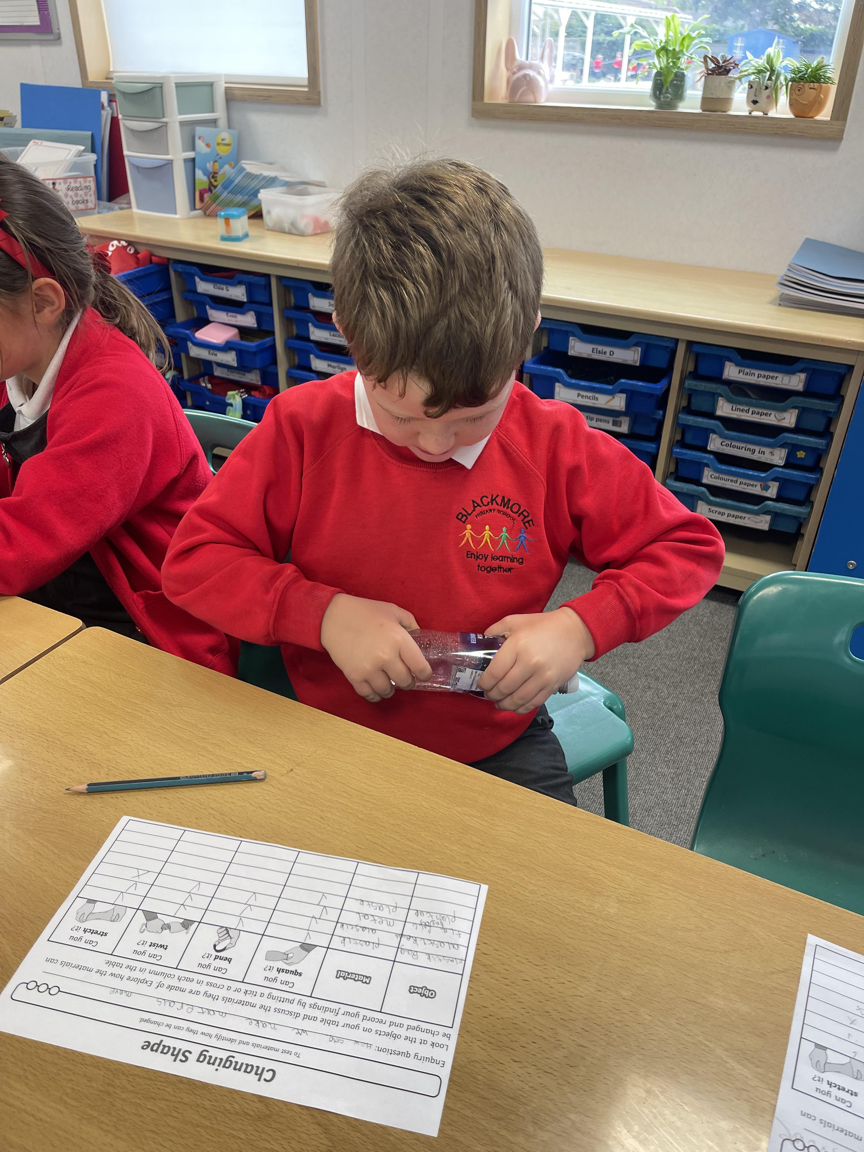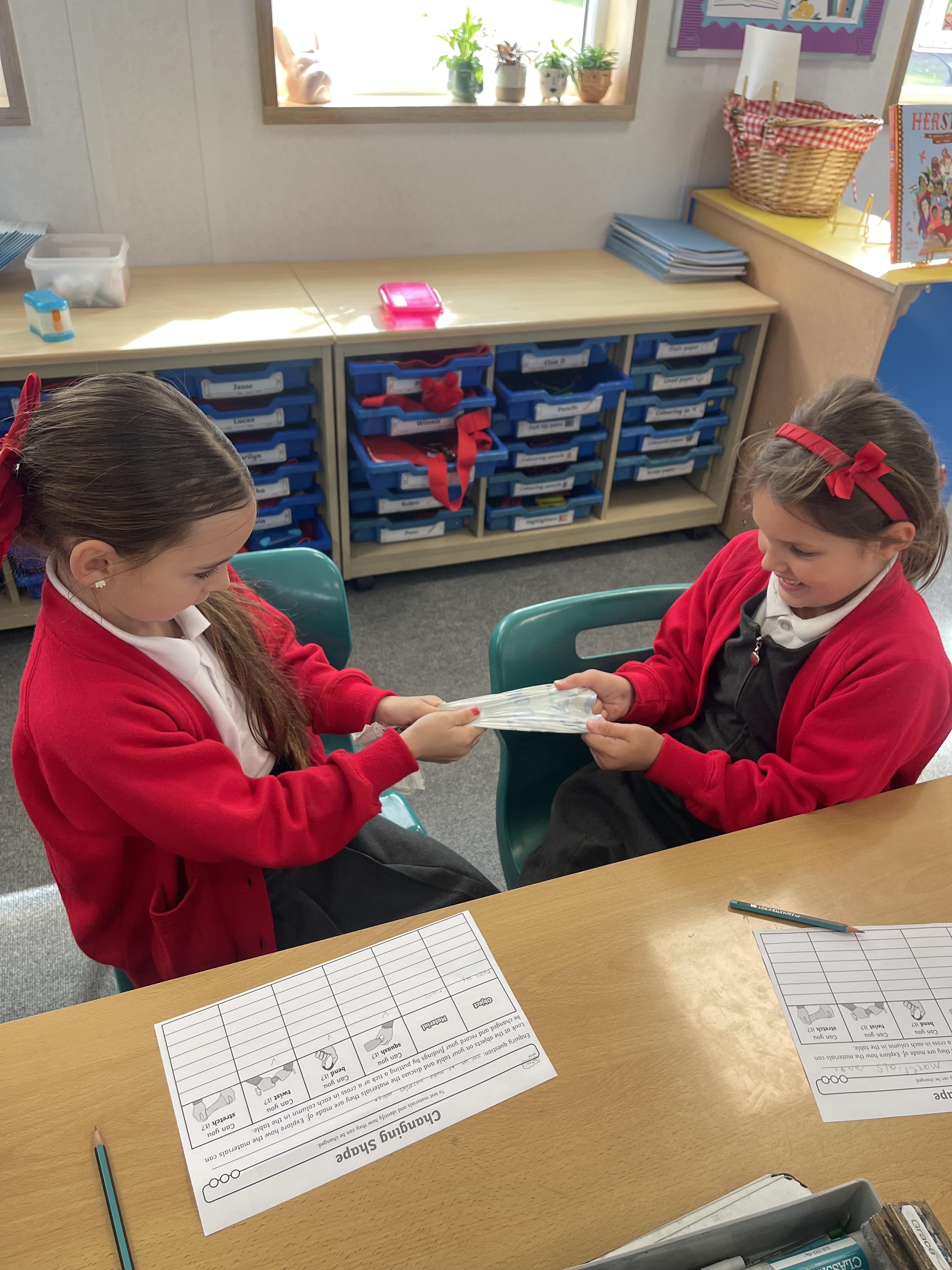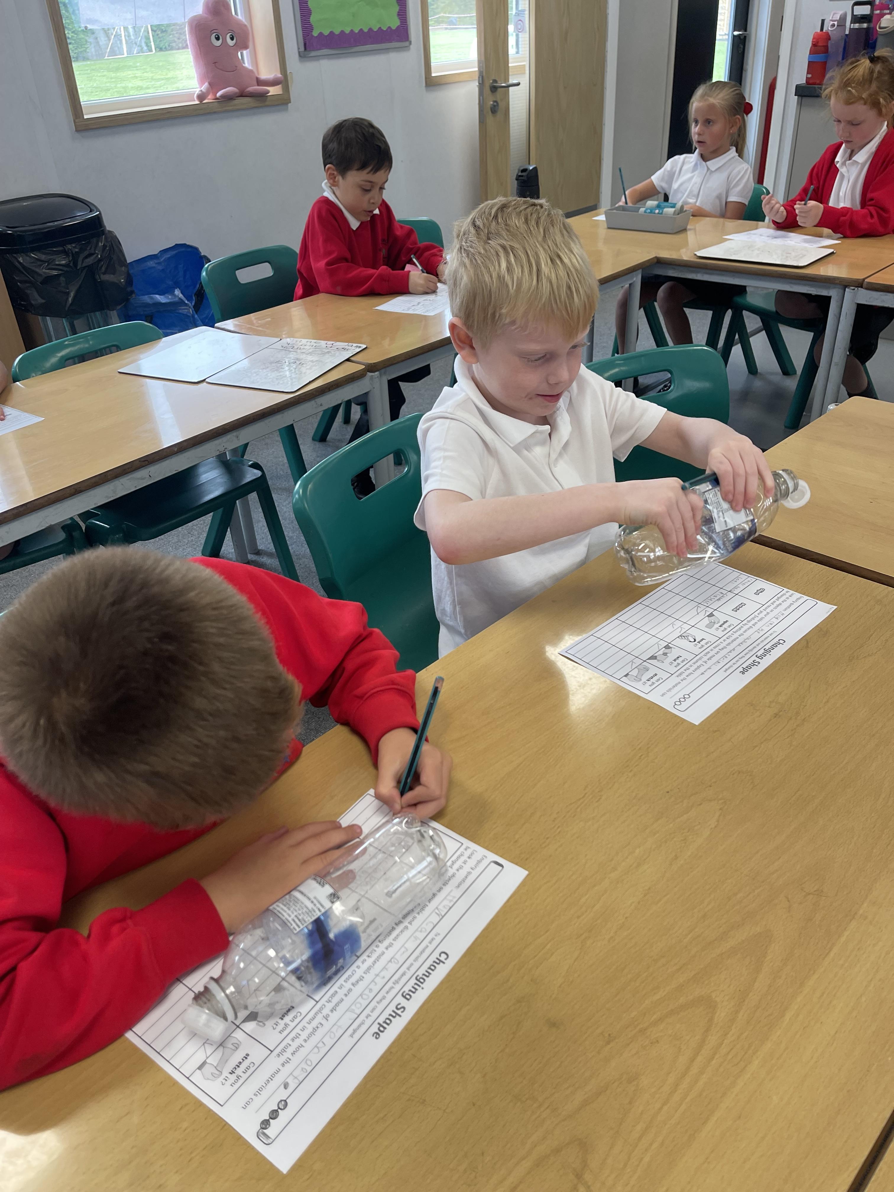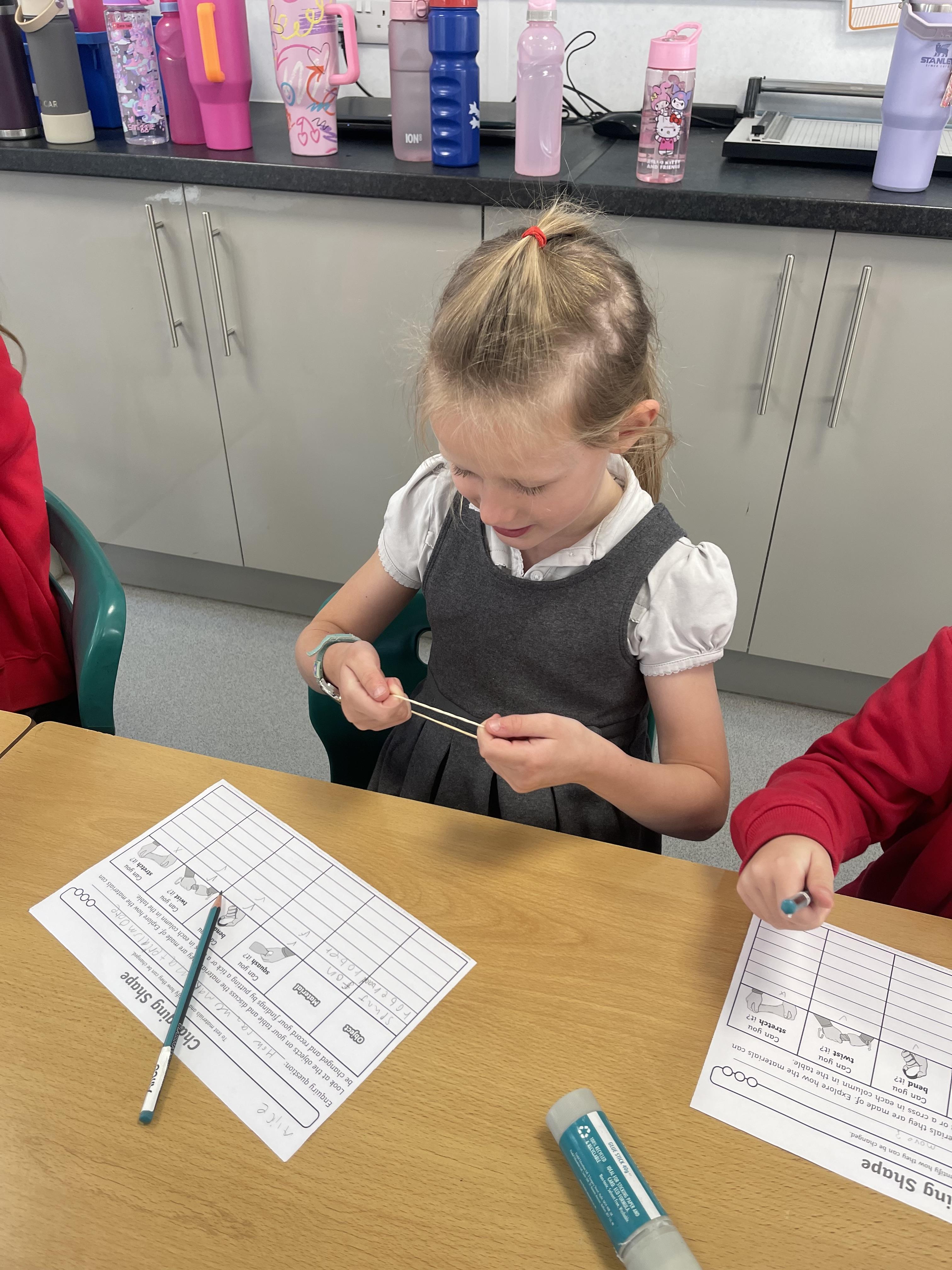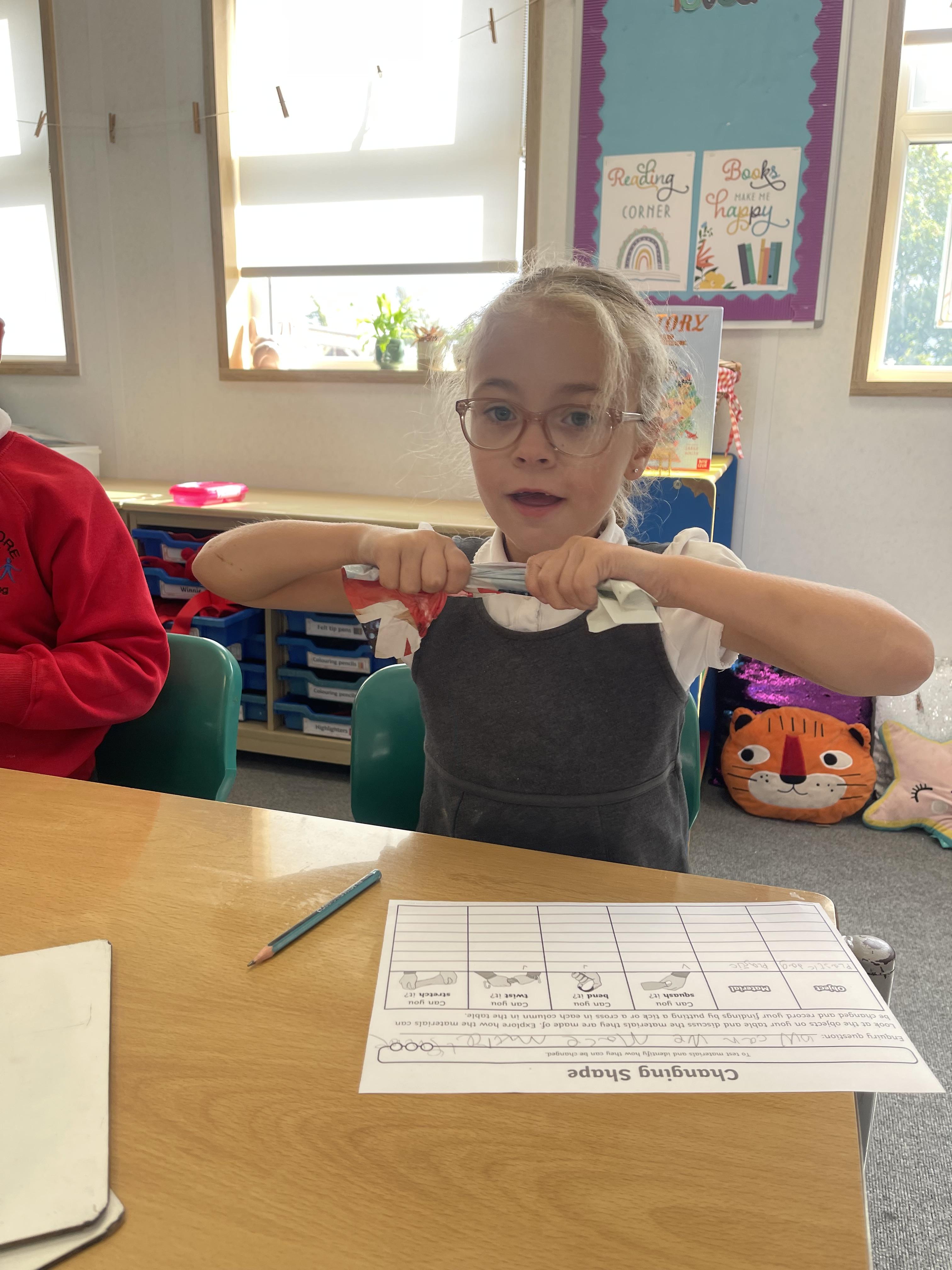 More fun science this week! Class 2 were investigating if they could squash, bend, twist and stretch different materials.