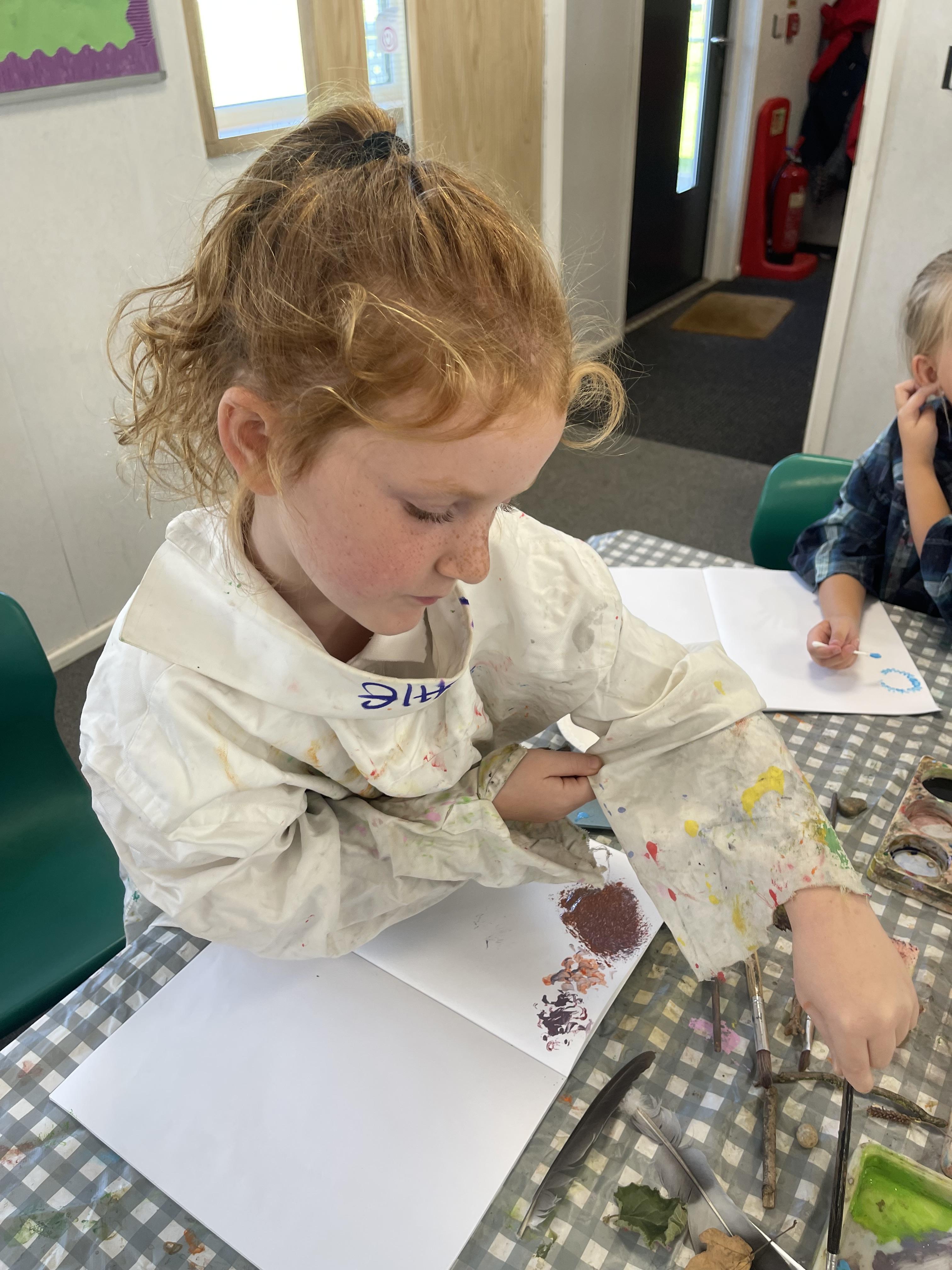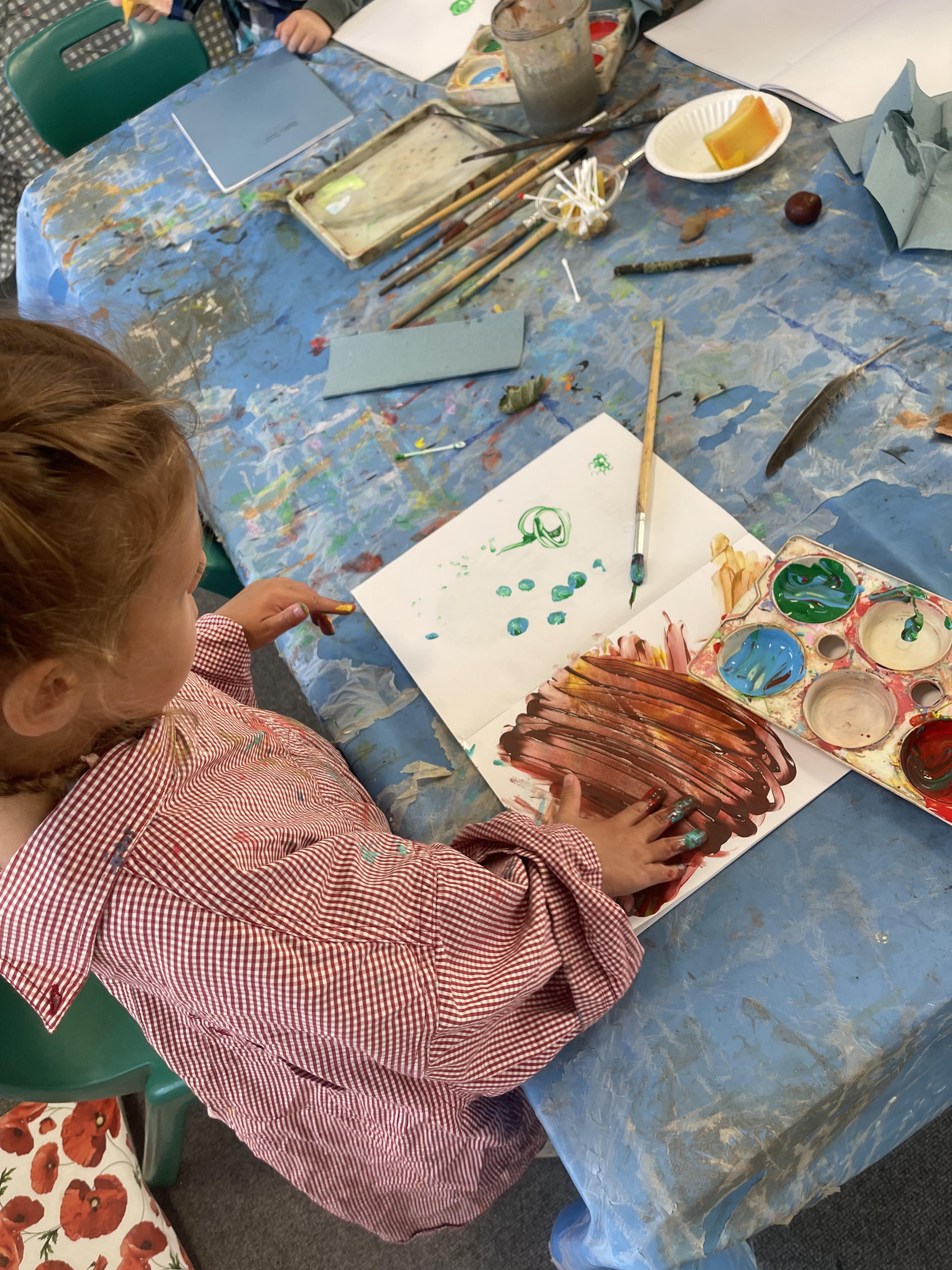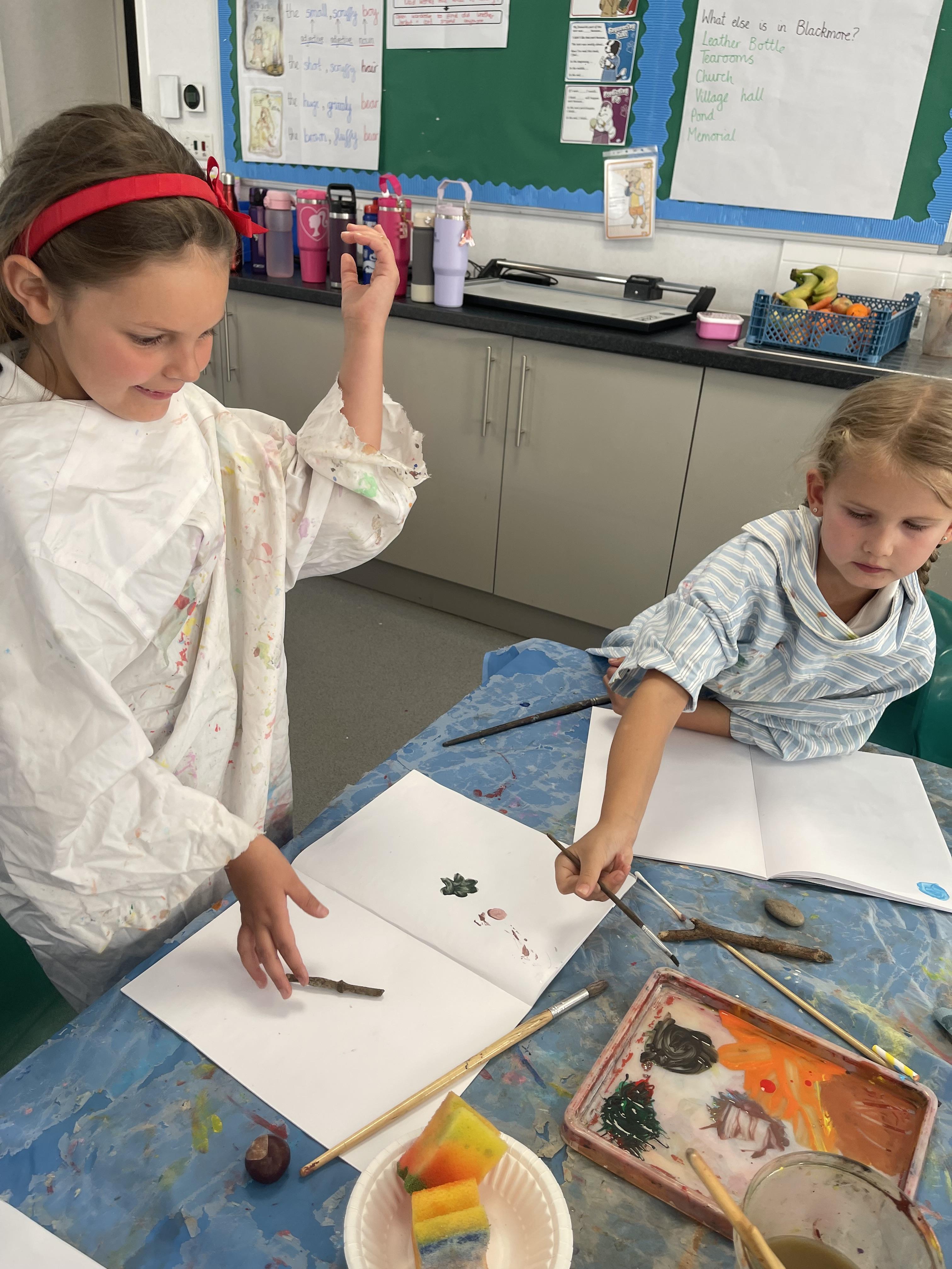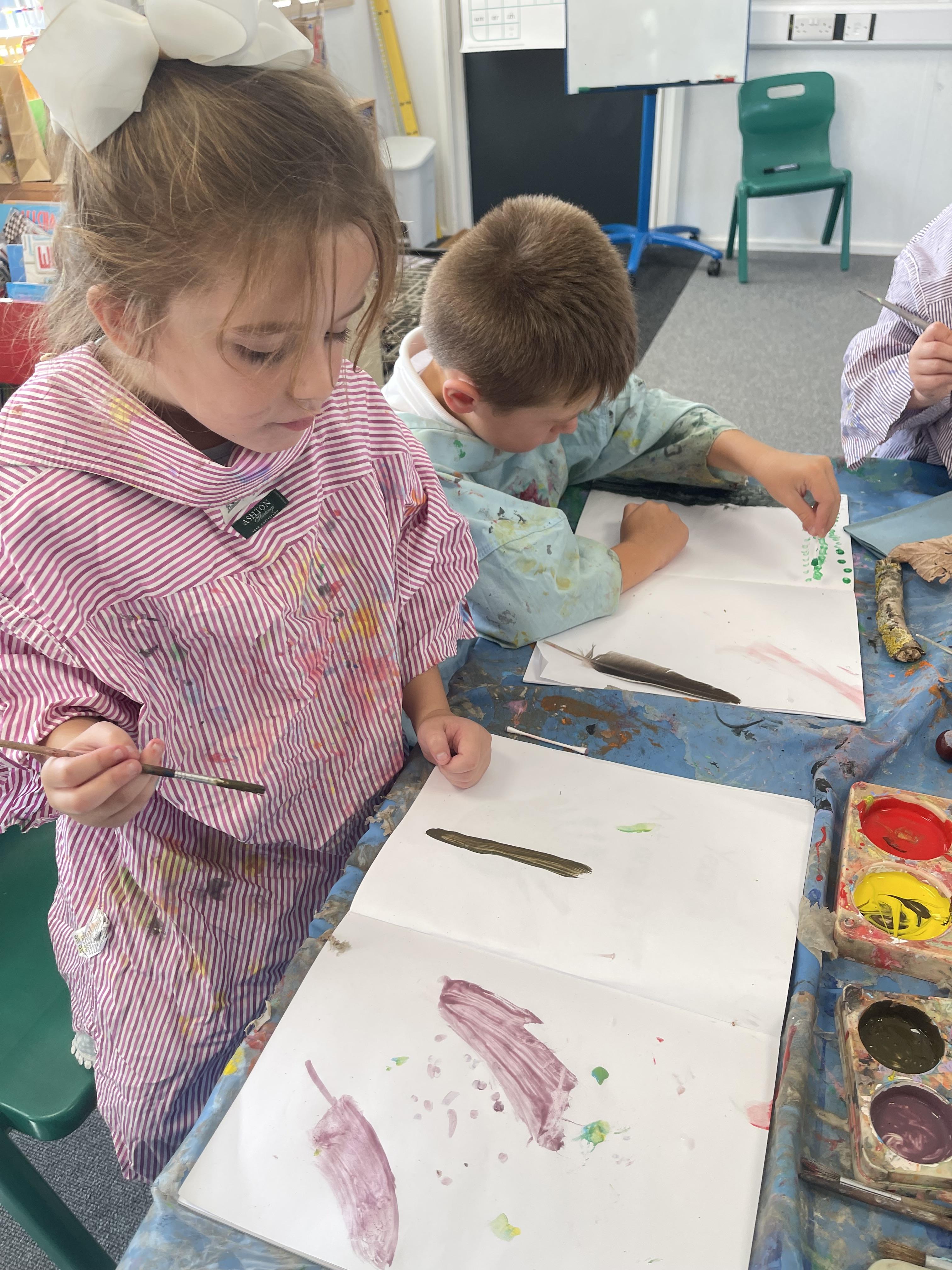 We were painting natural objects that we collected from our school field last week. The children had to use different tools to create different textures.