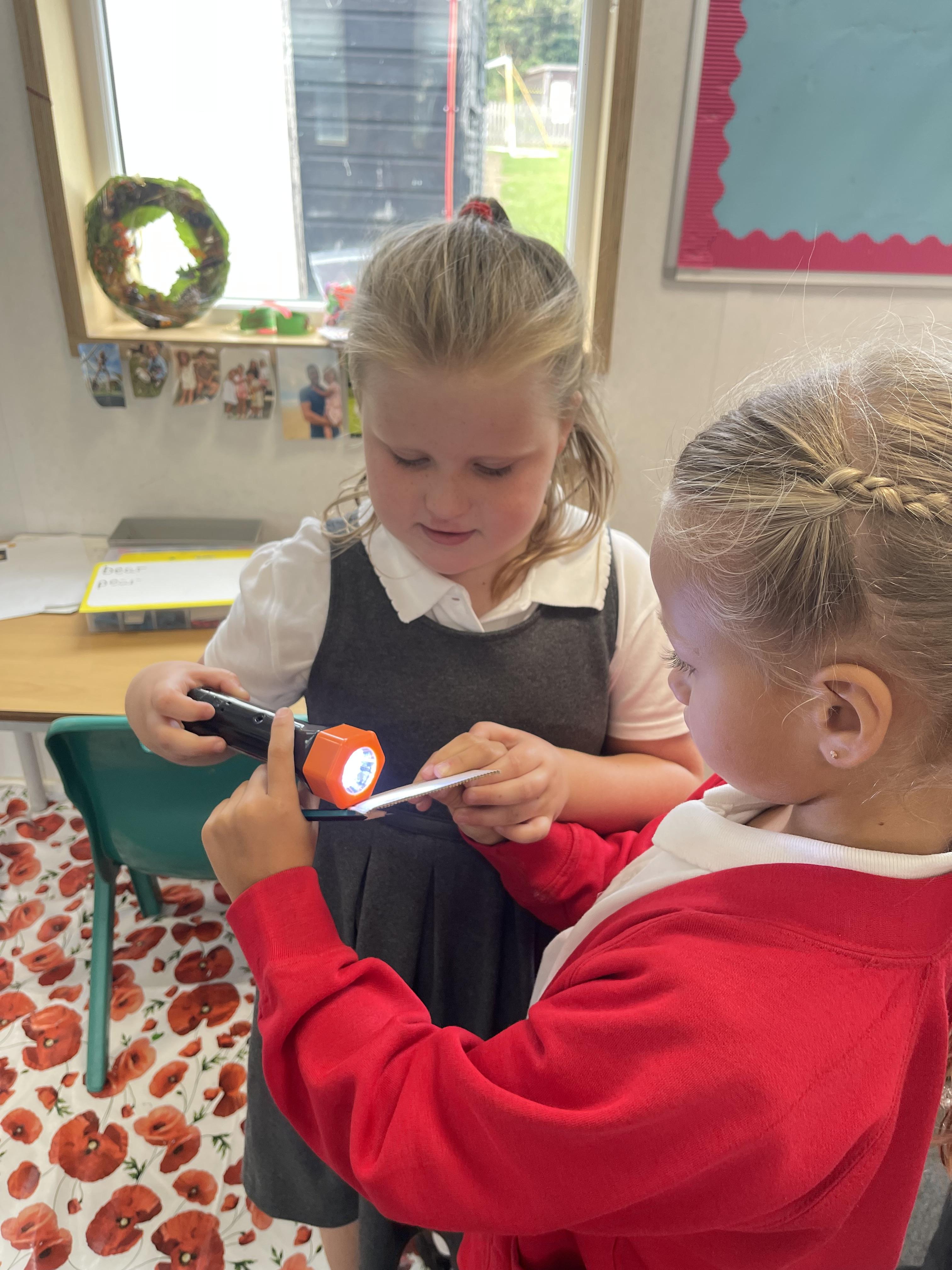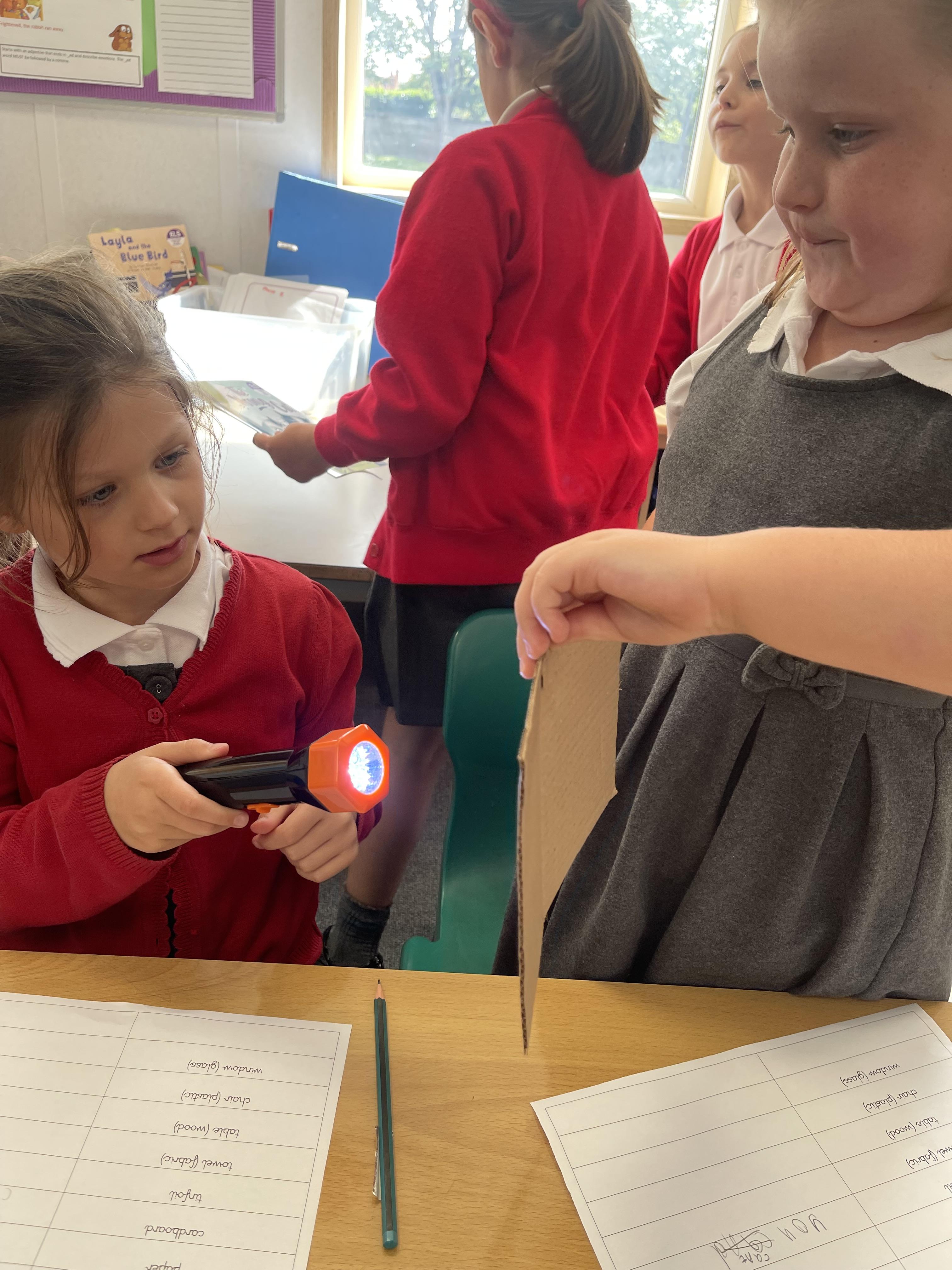 Class 2 had lots of fun investigating if different materials were transparent, translucent or opaque using torches.