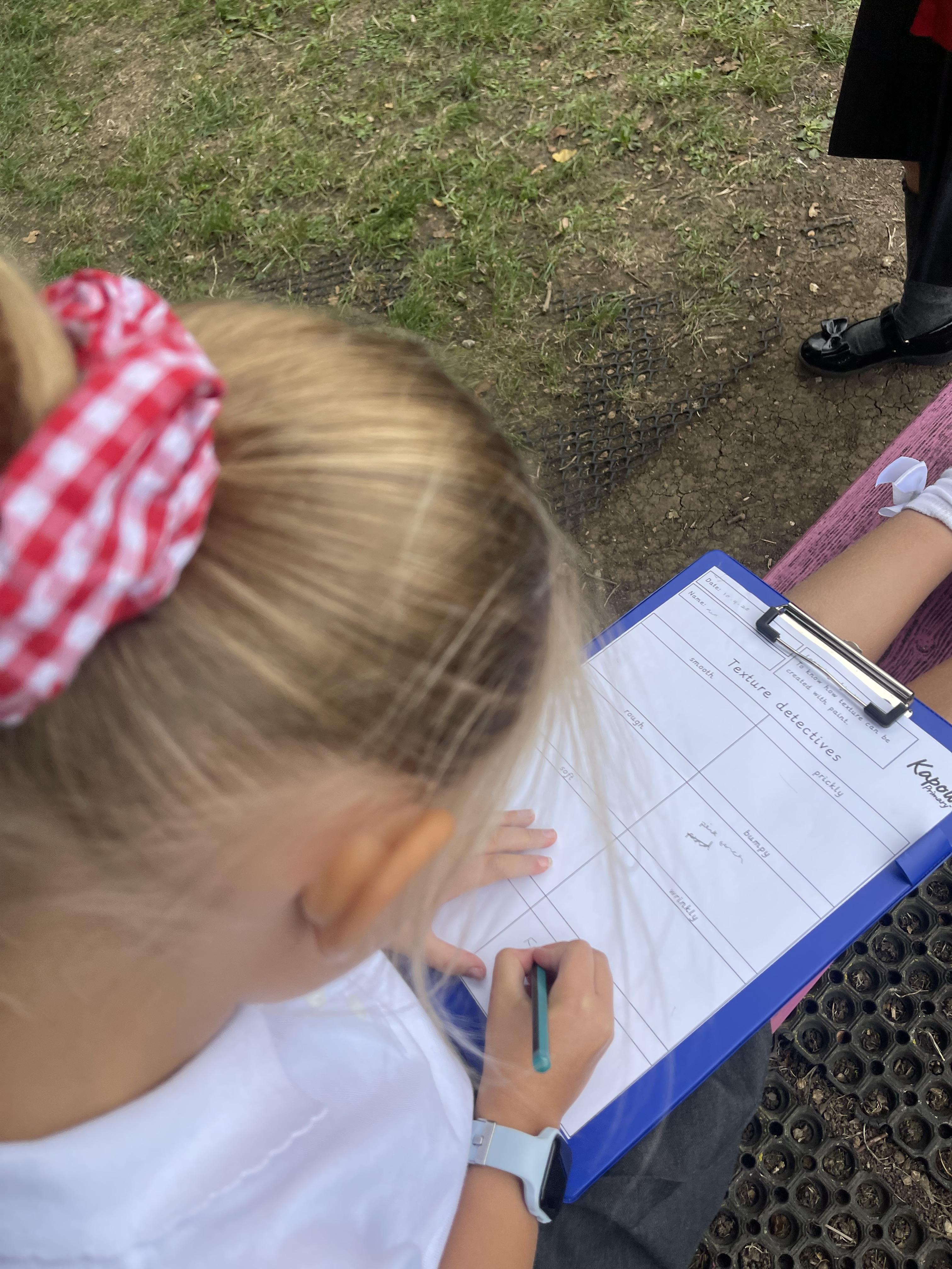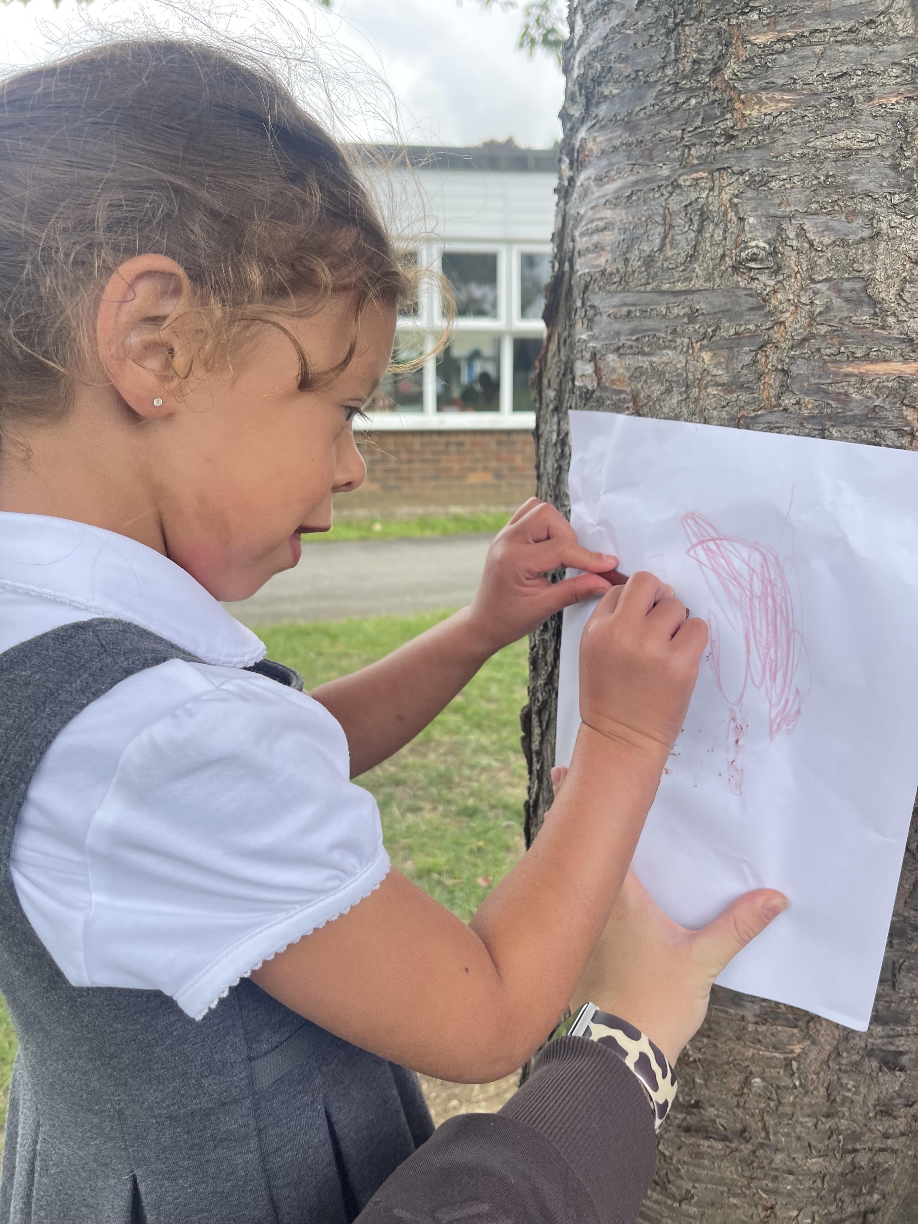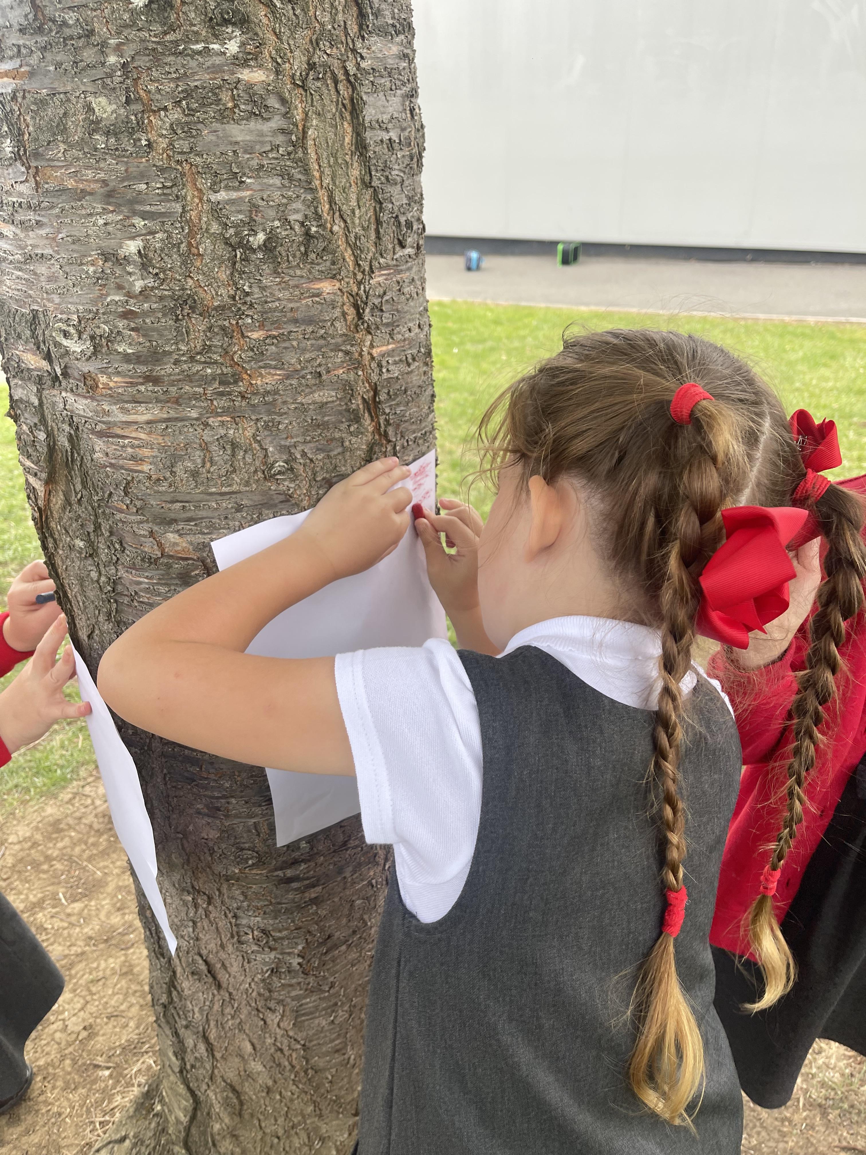 Today we did crayon rubbings of different objects on our school grounds. We went on a texture hunt to gather ideas for next weeks art lesson where we'll be painting natural resources using different textures.