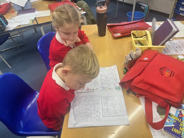 Class 4 have worked so hard creating the most fantastic stories in English. They used amazing vocabulary, fronted adverbials and expanded noun phrases. On Friday, we got to share our writing with Class 1!