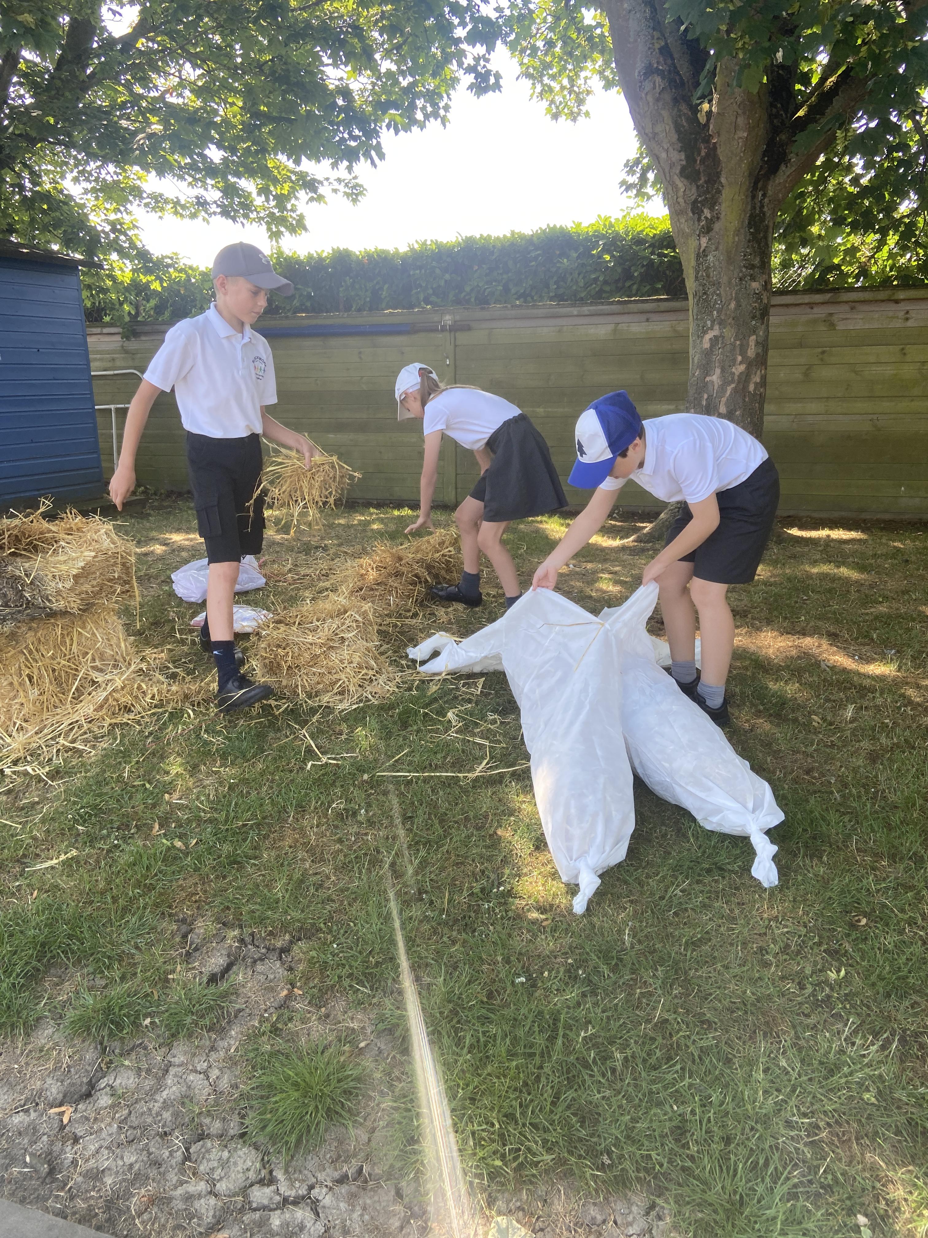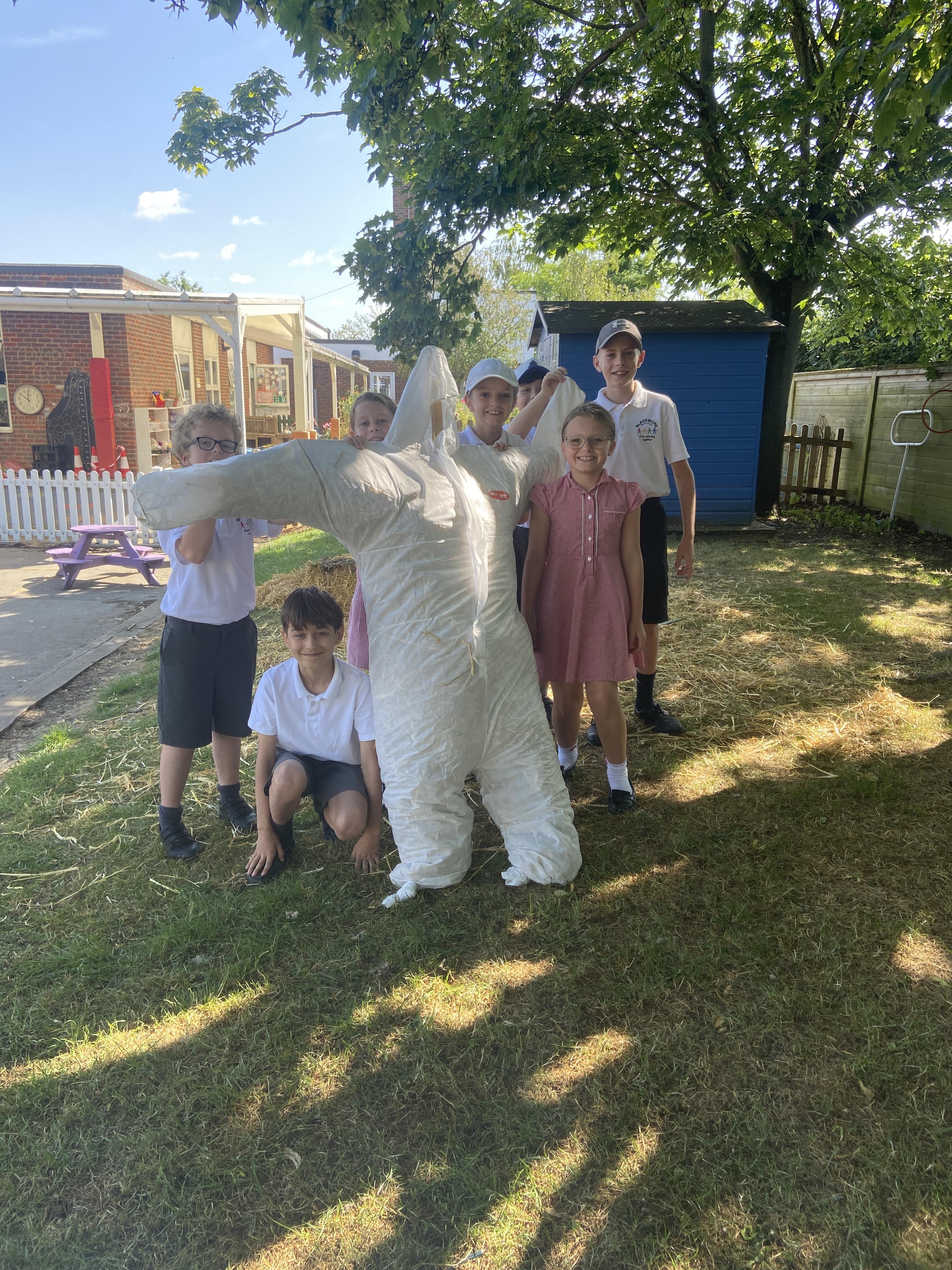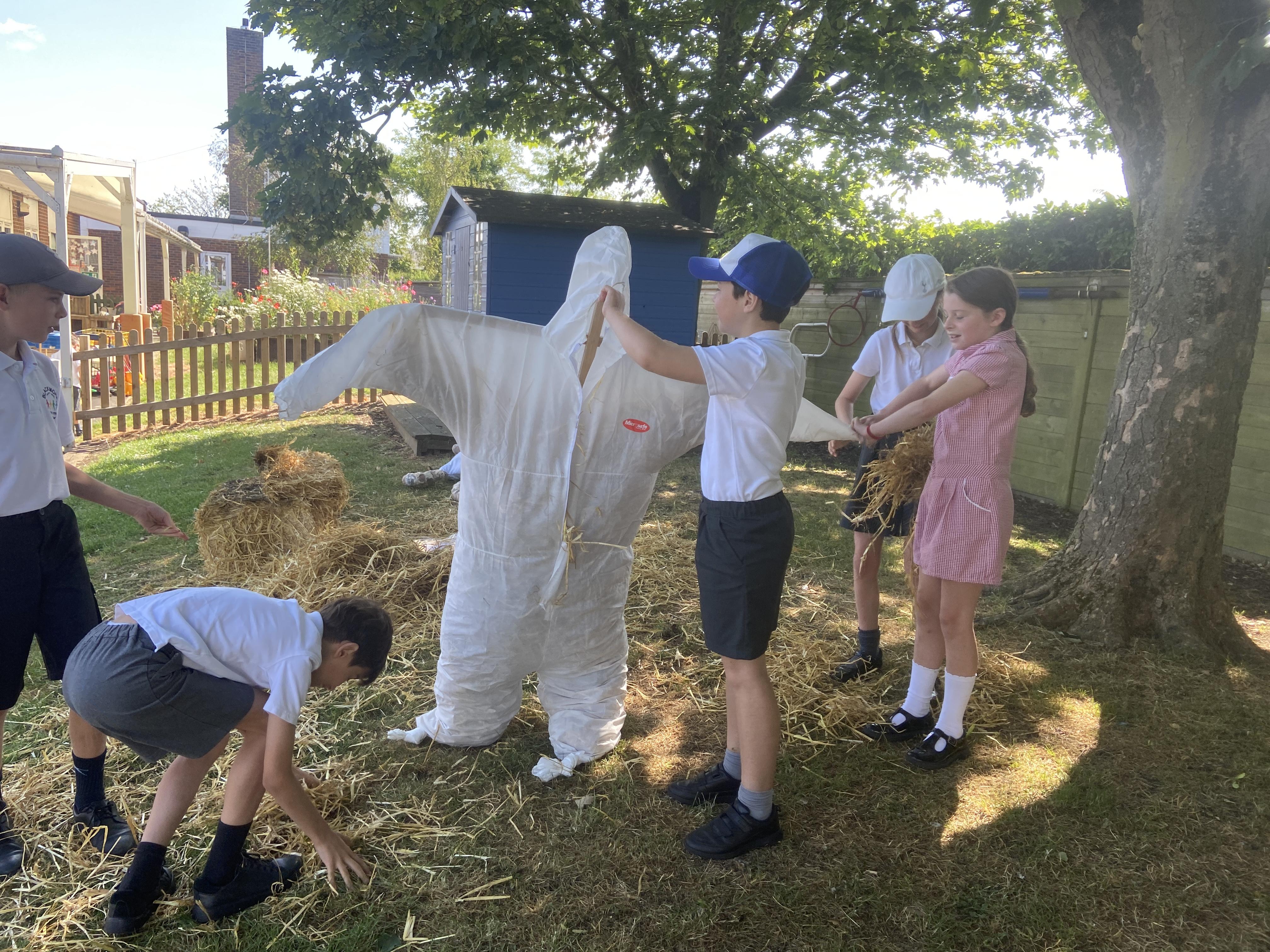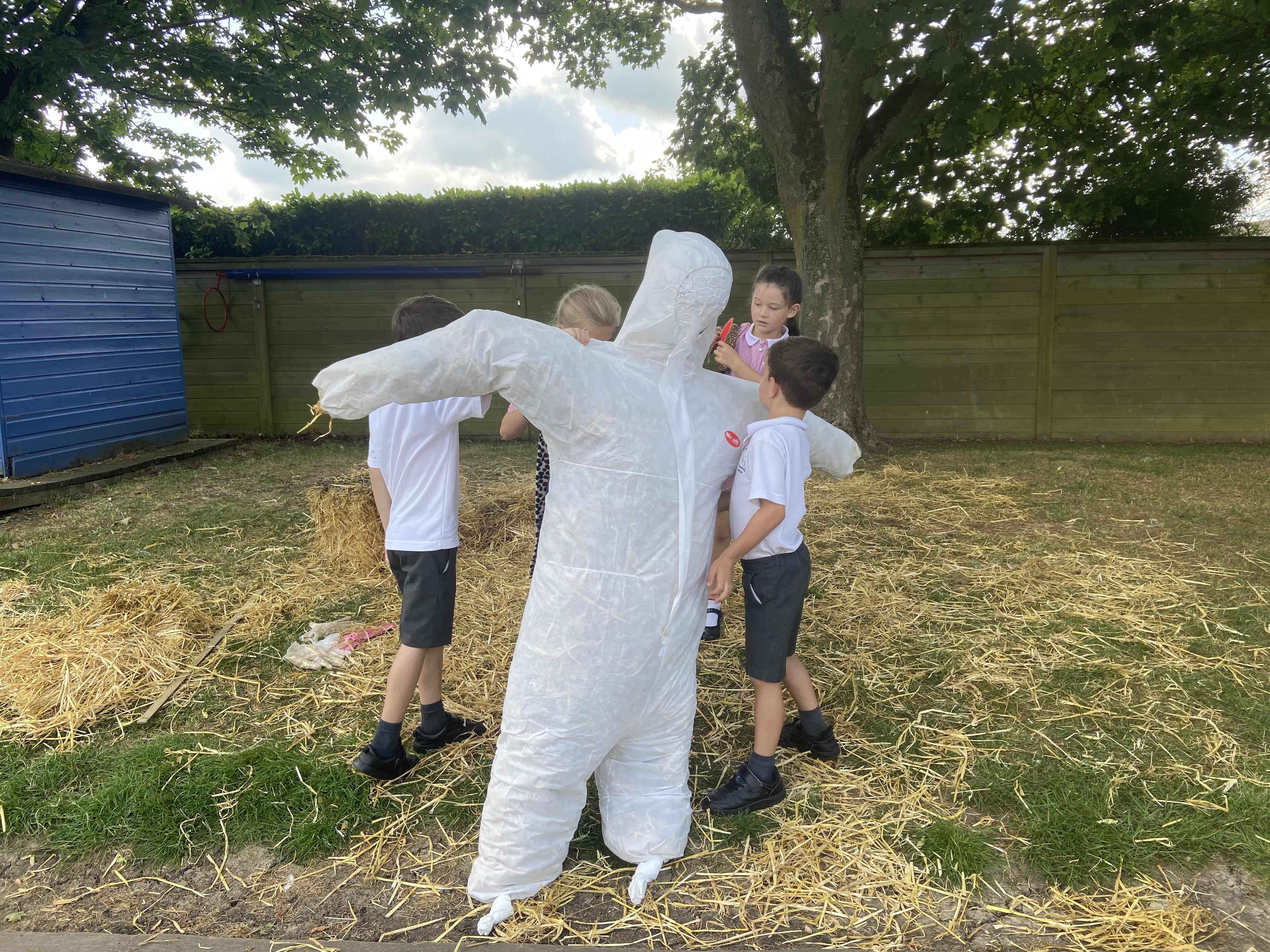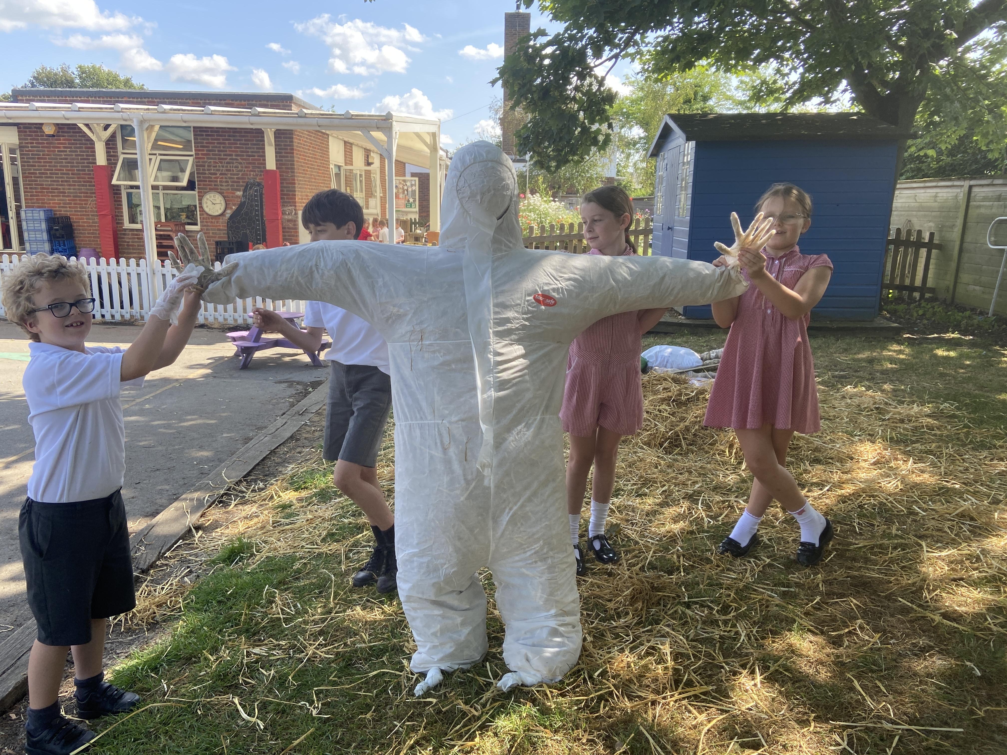 Creation of our scarecrow.......he grew.....and grew!
