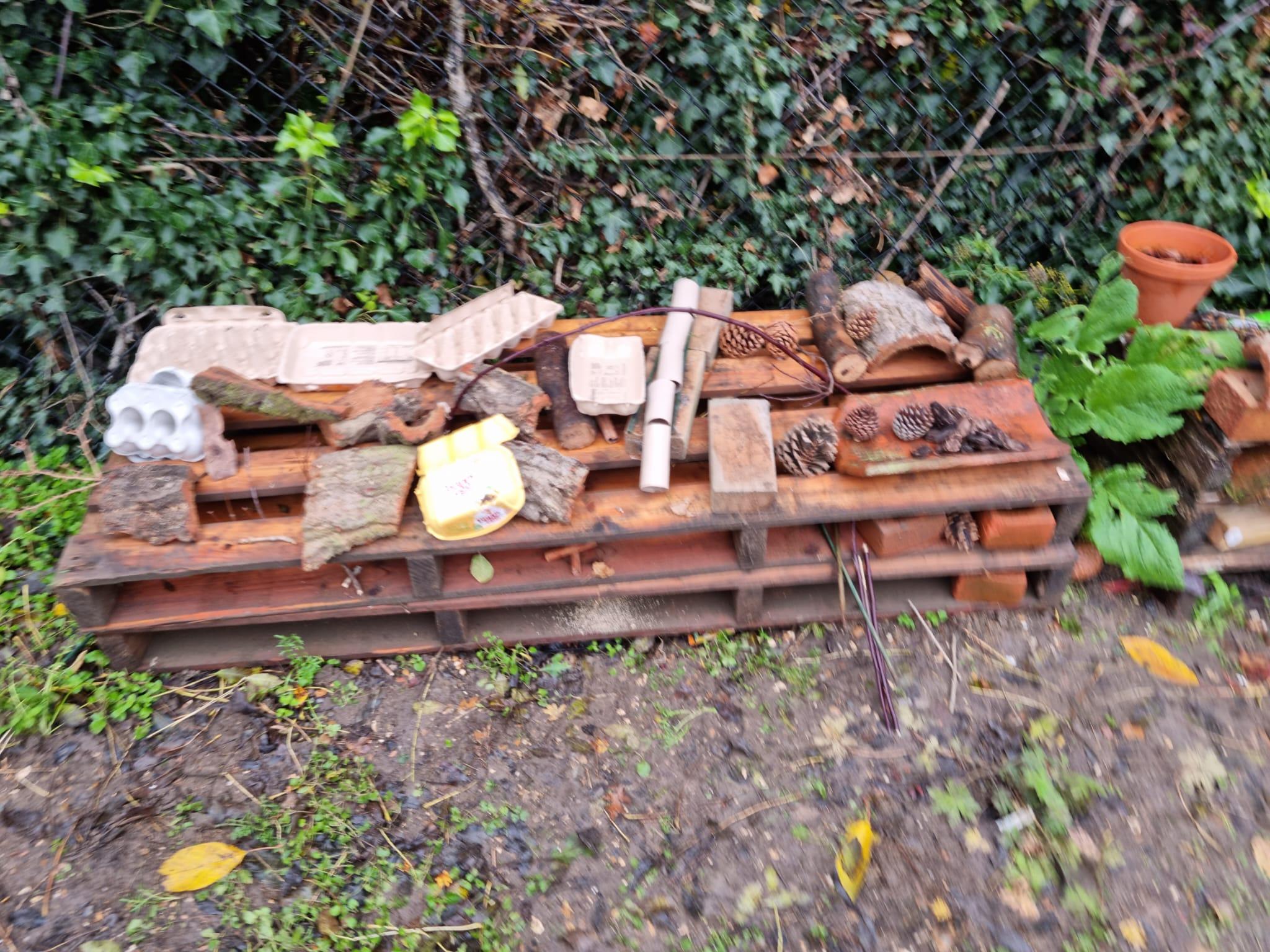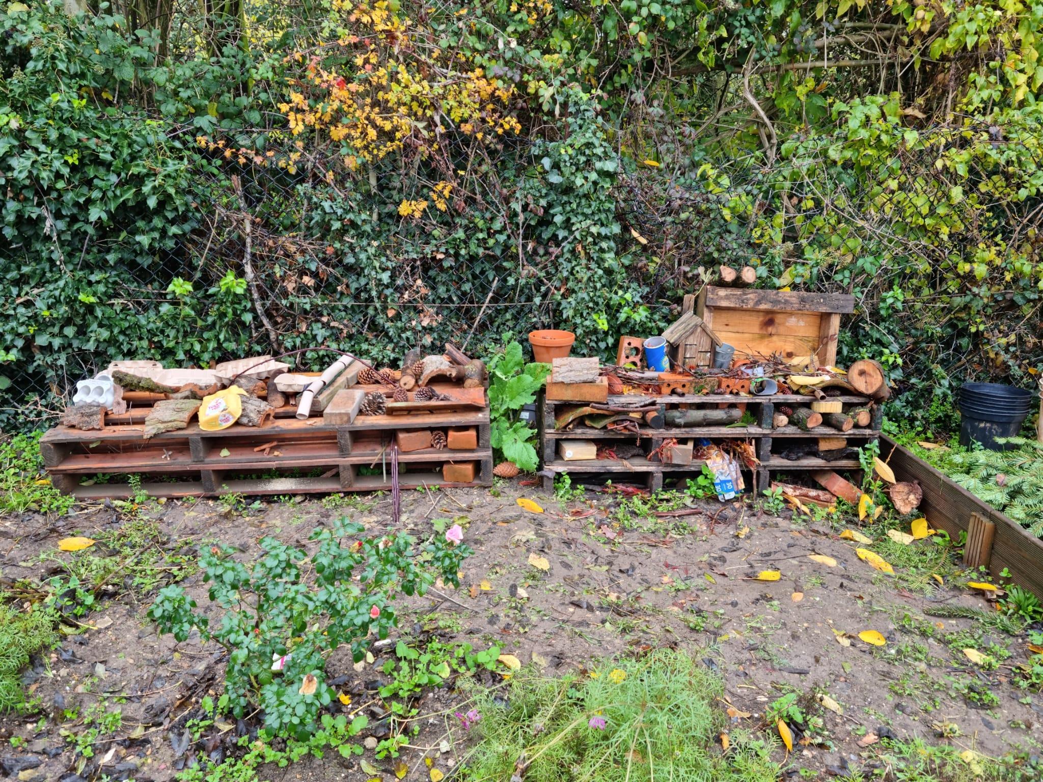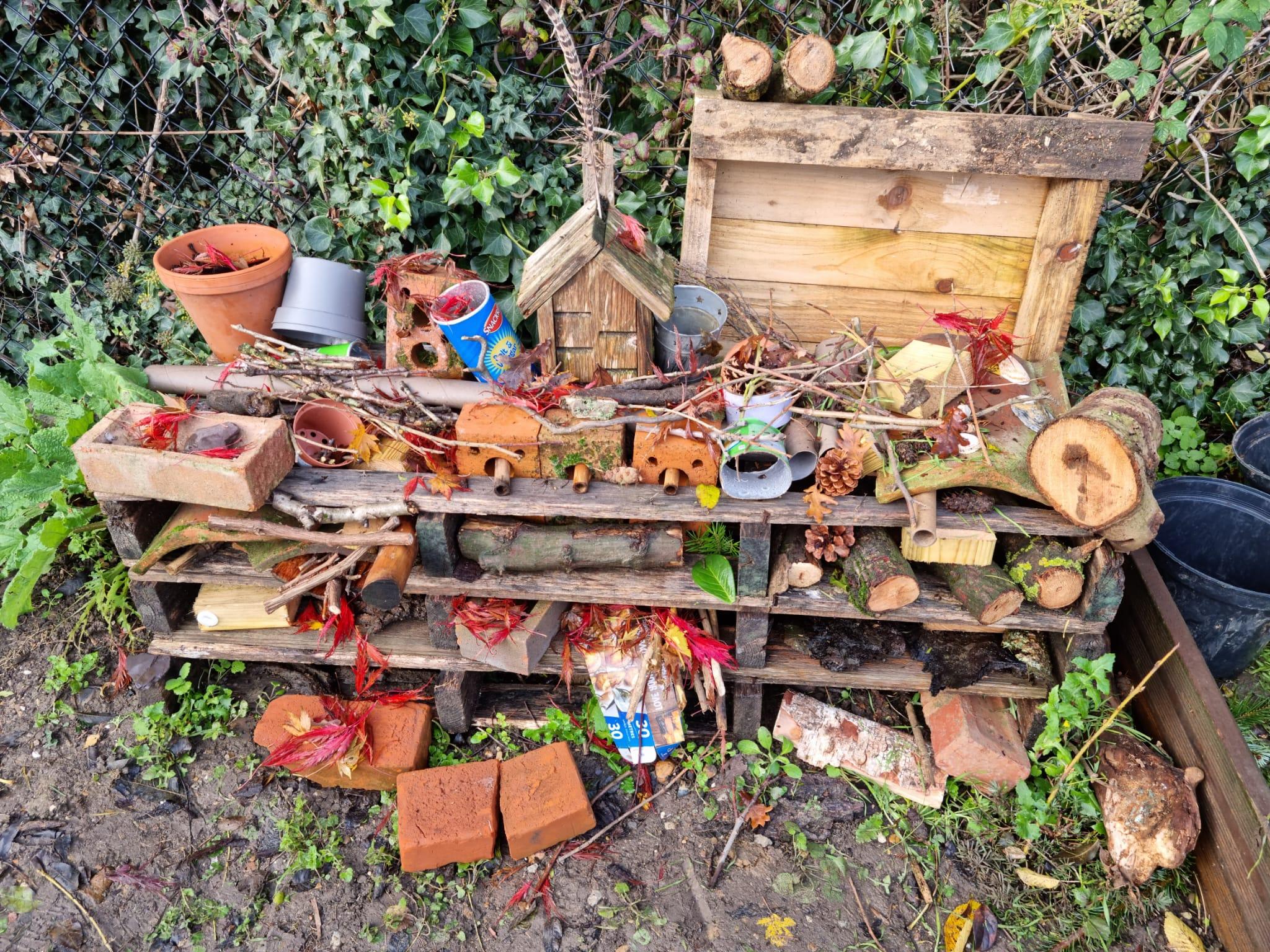 It has been a lot of fun building our bug hotels.  Each class has designed and built their own section, ready for the bugs to find shelter over the winter.