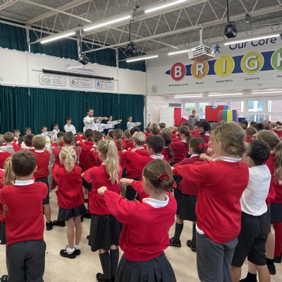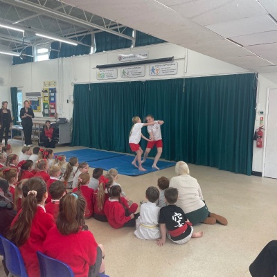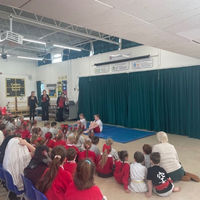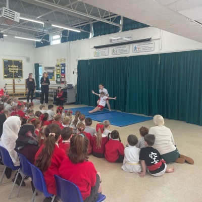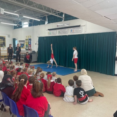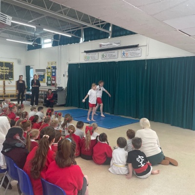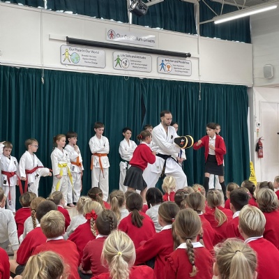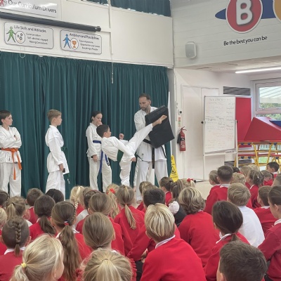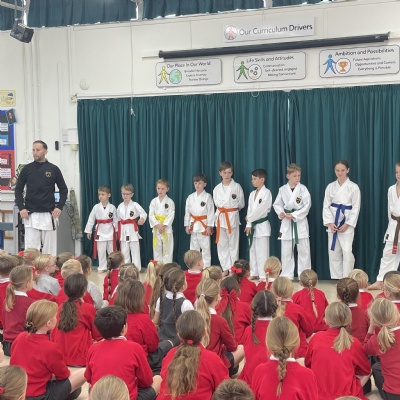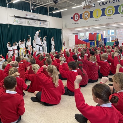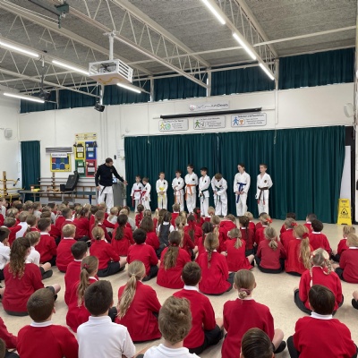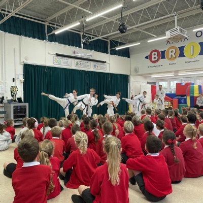 Karate assembly with demonstrations from our very own Jacob!
